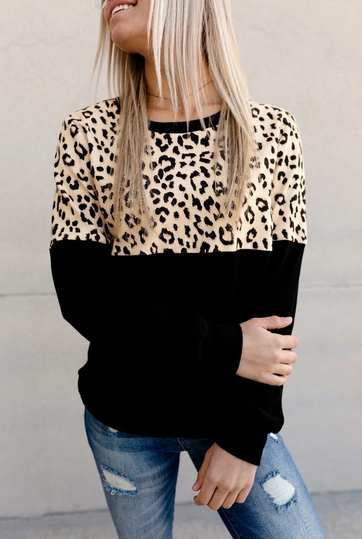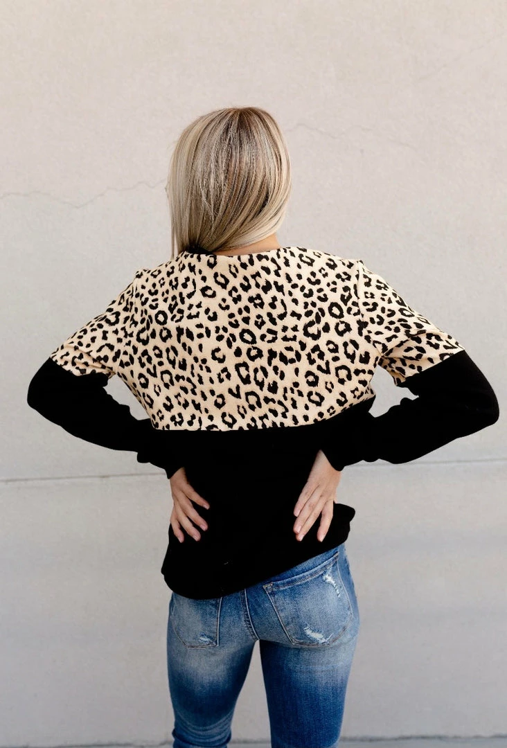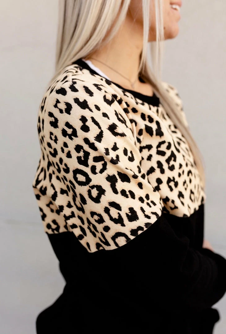 we canβt get enough of this leopard print pullover. Itβs extra stretchy and extra adorable. Relaxed fit. 95% cotton and 5% spandex.