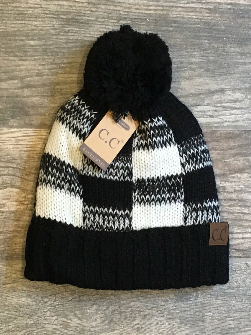 Fleece lined C.C plaid beanie. Available in Black/White and Black/Red.
