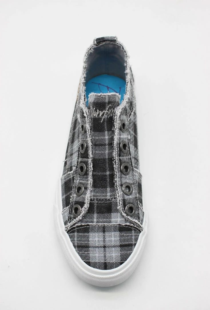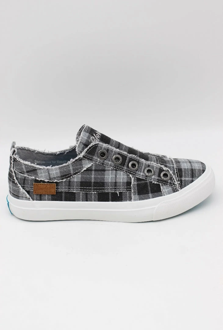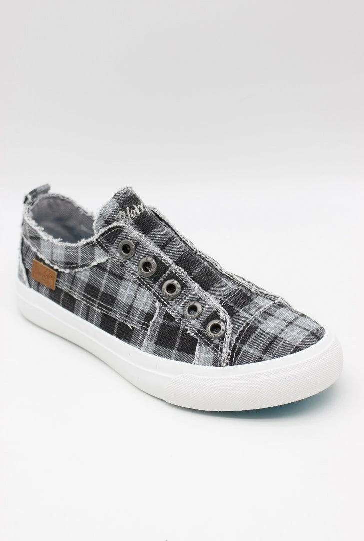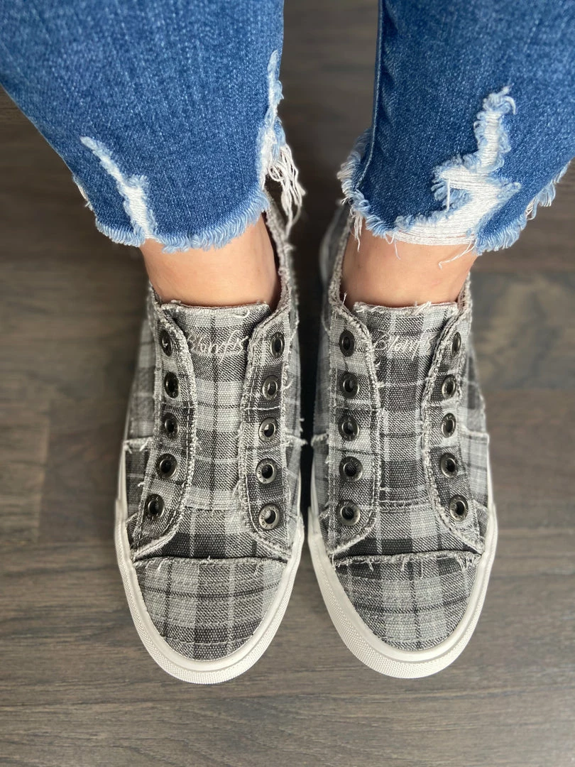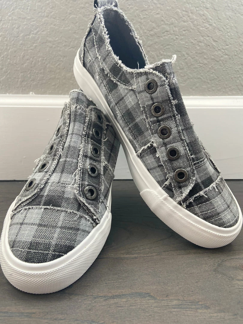 Our favorite Blowfish Play Sneaker in a gray plaid. Pre-distress and laceless for easy in and out access. You won’t want to miss out on these. True to size.