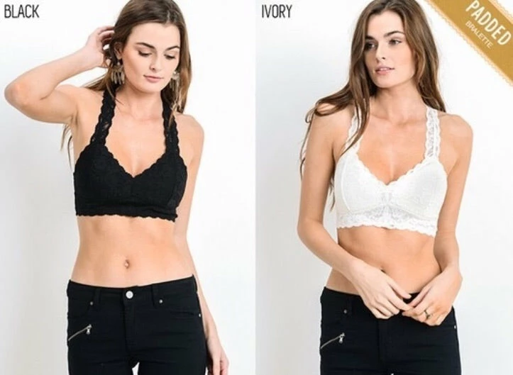 Lace Bralette with optional removable padding. BLACK and IVORY available.ย 90% nylonย 10% spandex