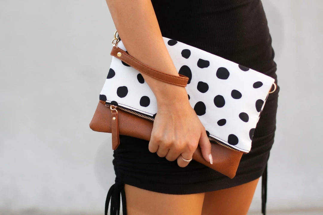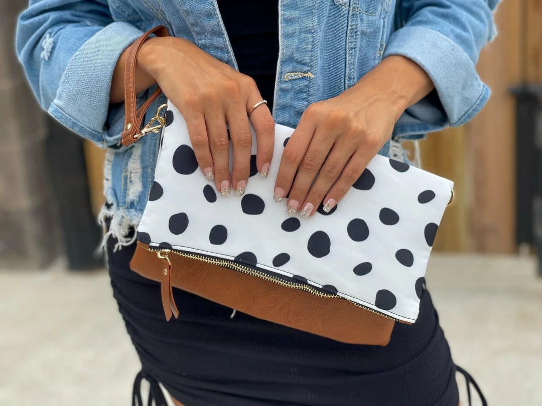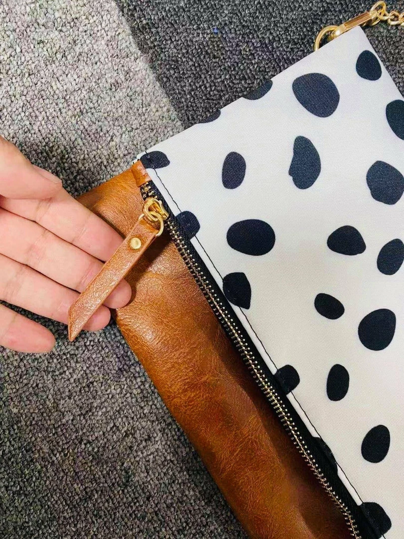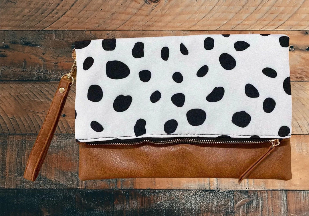 Ready to add a nice touch to any outfit with this Dolly Snap Clutch. This animal print clutch has a a snap closure, zipper and black interior. Comes with a detachable wristlet.