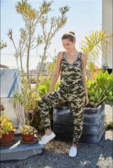 Buttery soft Sleeveless camo print jumpsuit with pockets. You could you live in this. Model is wearing a size small. Worn as a relaxed fit. 95% polyester 5% spandex. Each tie dye is unique in it own way. Made in the USA