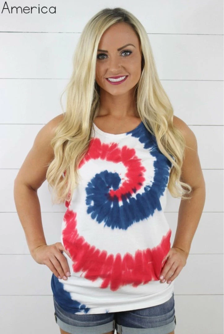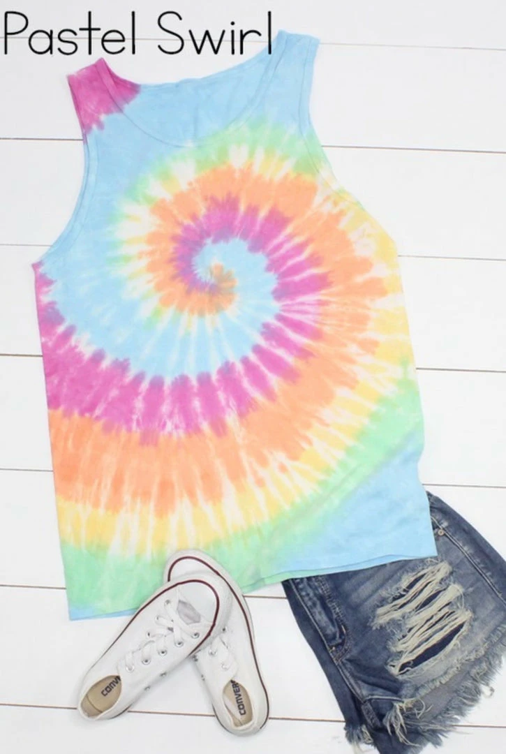 Fun and colorful swirl tie dye muscle tank. These tanks scream summer. Slight relaxed fit with wide arm openings. 100% cotton.