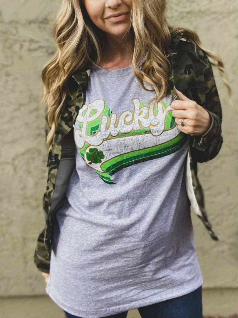 Get into some shenanigans with this heathered grey Next Level tee. Vintage look with a little gold glitter. Perfect for St. Patrickโs Day or any day. Unisex fit. Size down for a more fitted look.ย