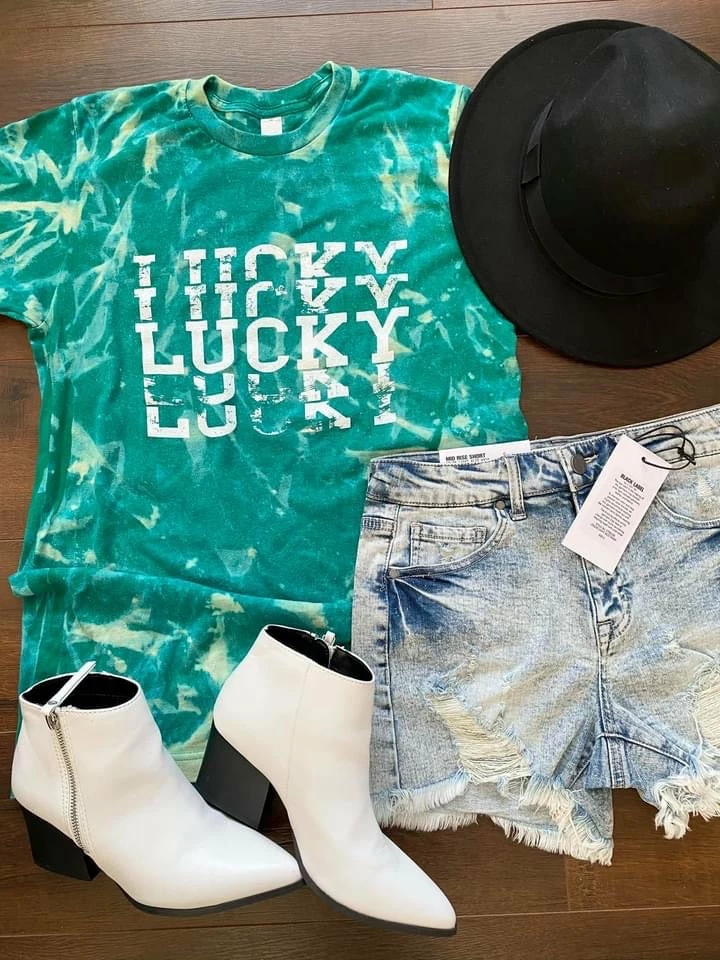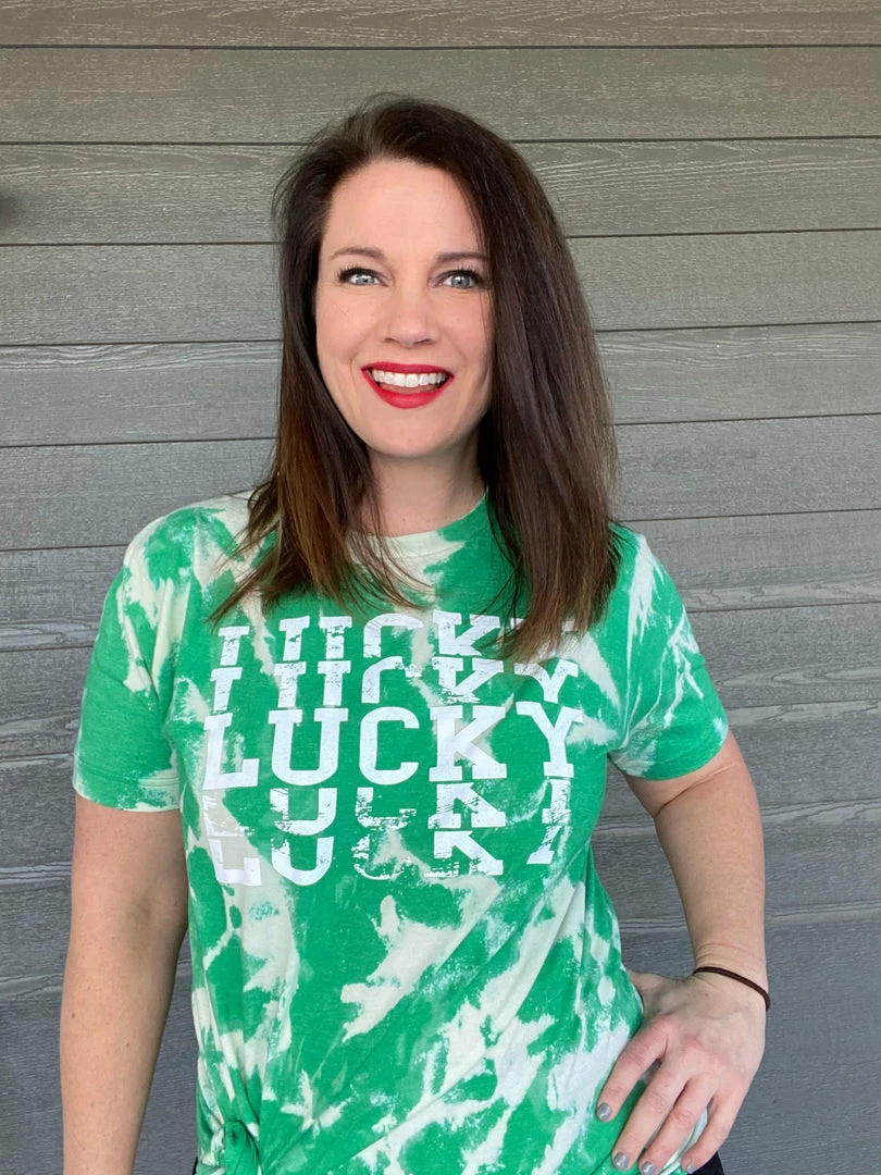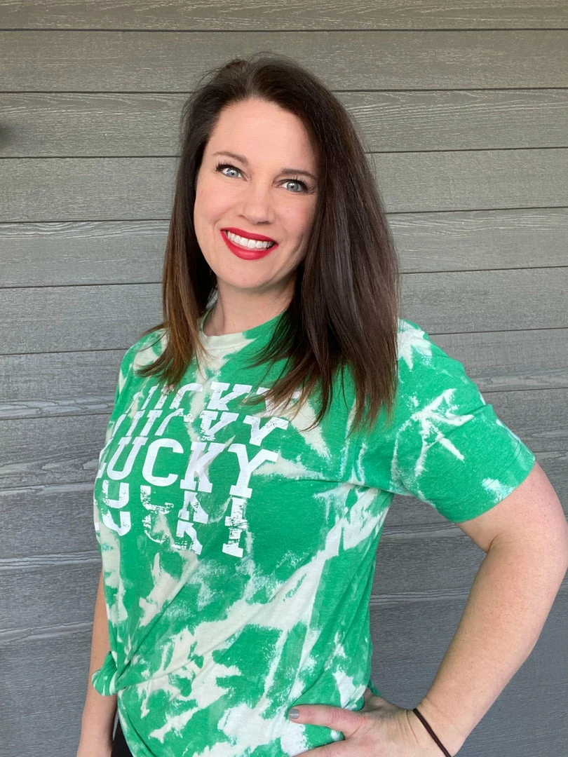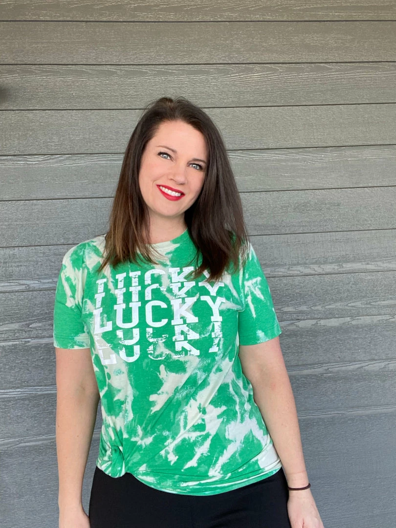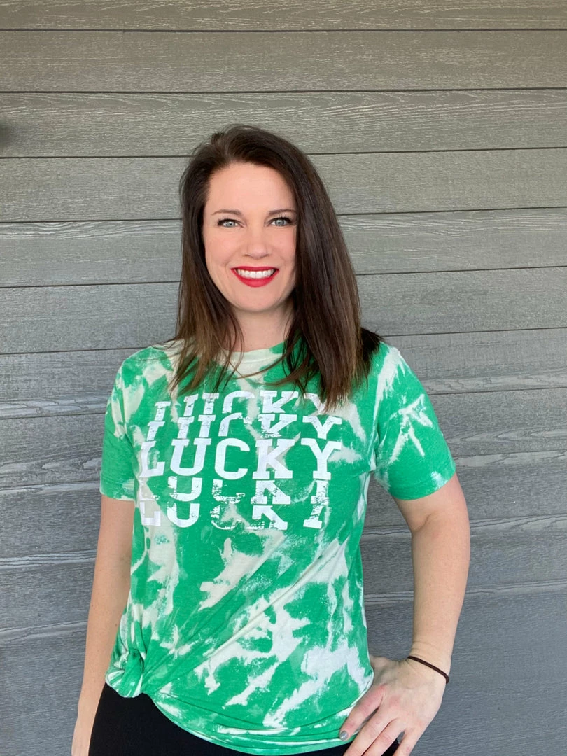 Get into some shenanigans with this Kelly green Tultex tee with tie dye and white Lucky on it. Perfect for St. Patrick’s Day or any day. Unisex fit. Size down for a more fitted look. Model is wearing a size medium. Each one is unique in it own way.