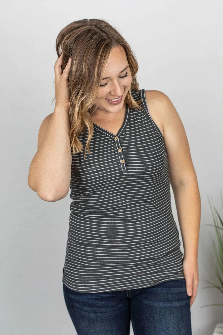 Our Addison Tank is the softest base layering piece you’ll ever feel! With a sweet, and functioning button detail, this tank top is sure to work in your closet all year round. Pair it with shorts in the heat, or a cozy cardigan on cooler days.ย