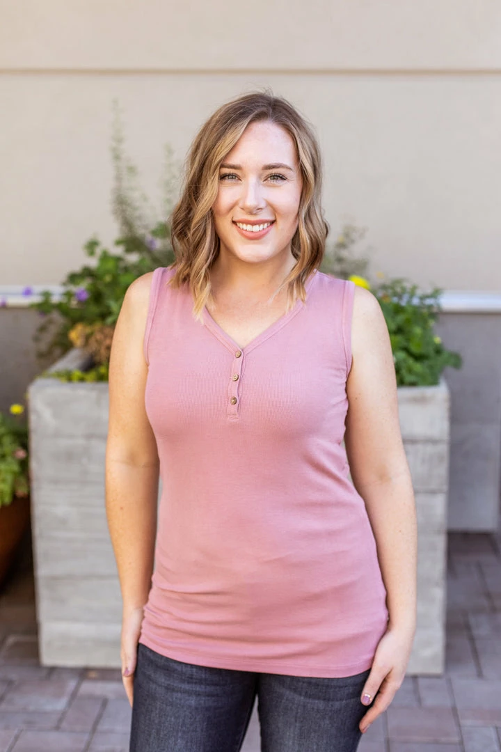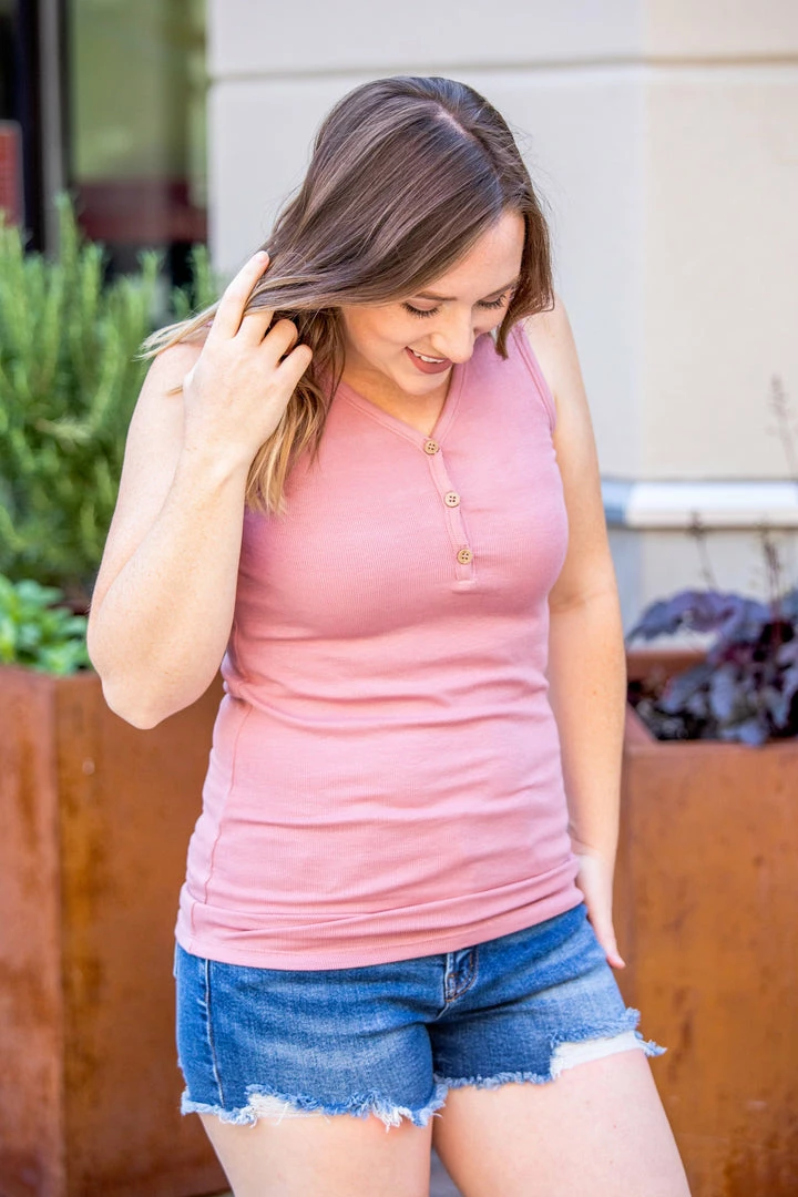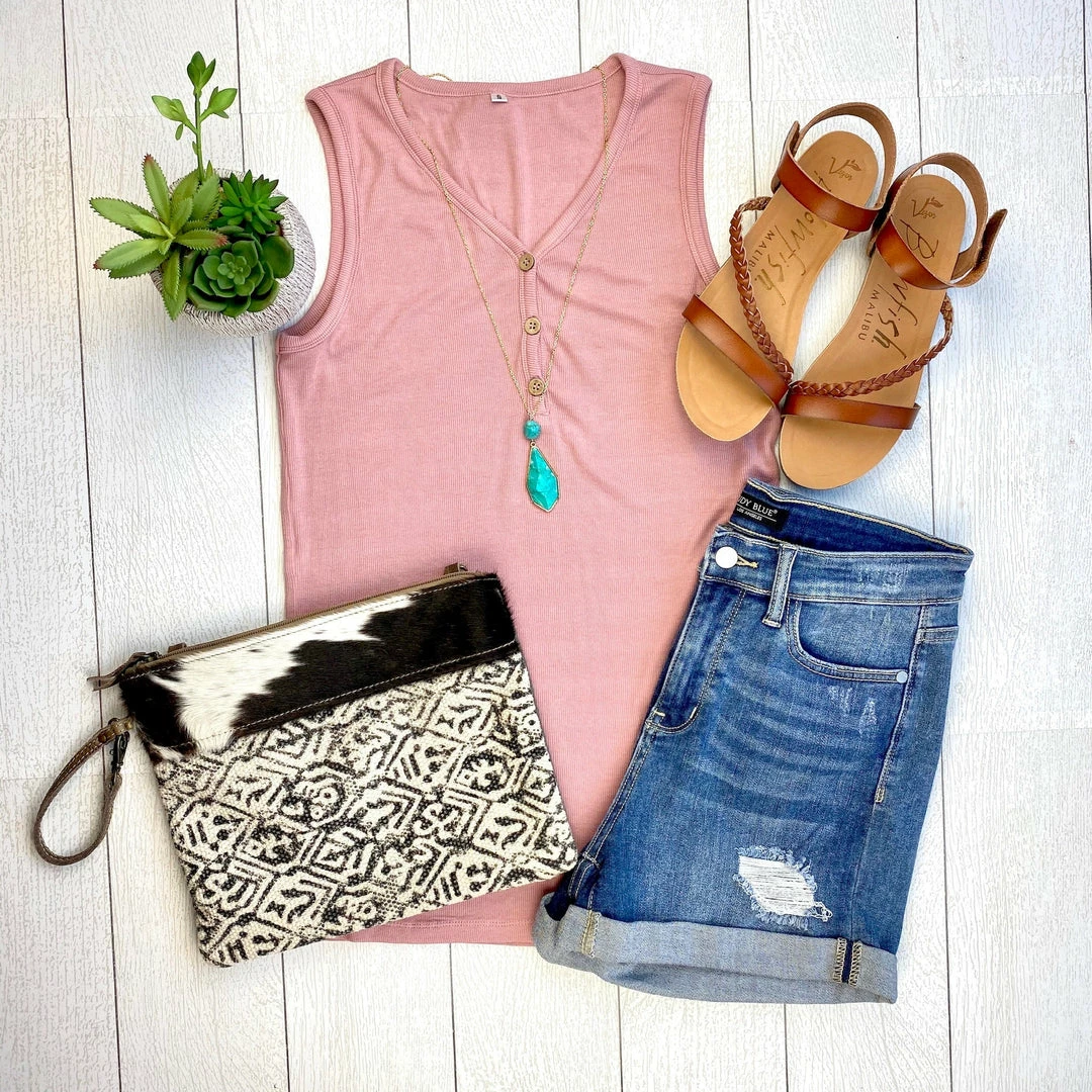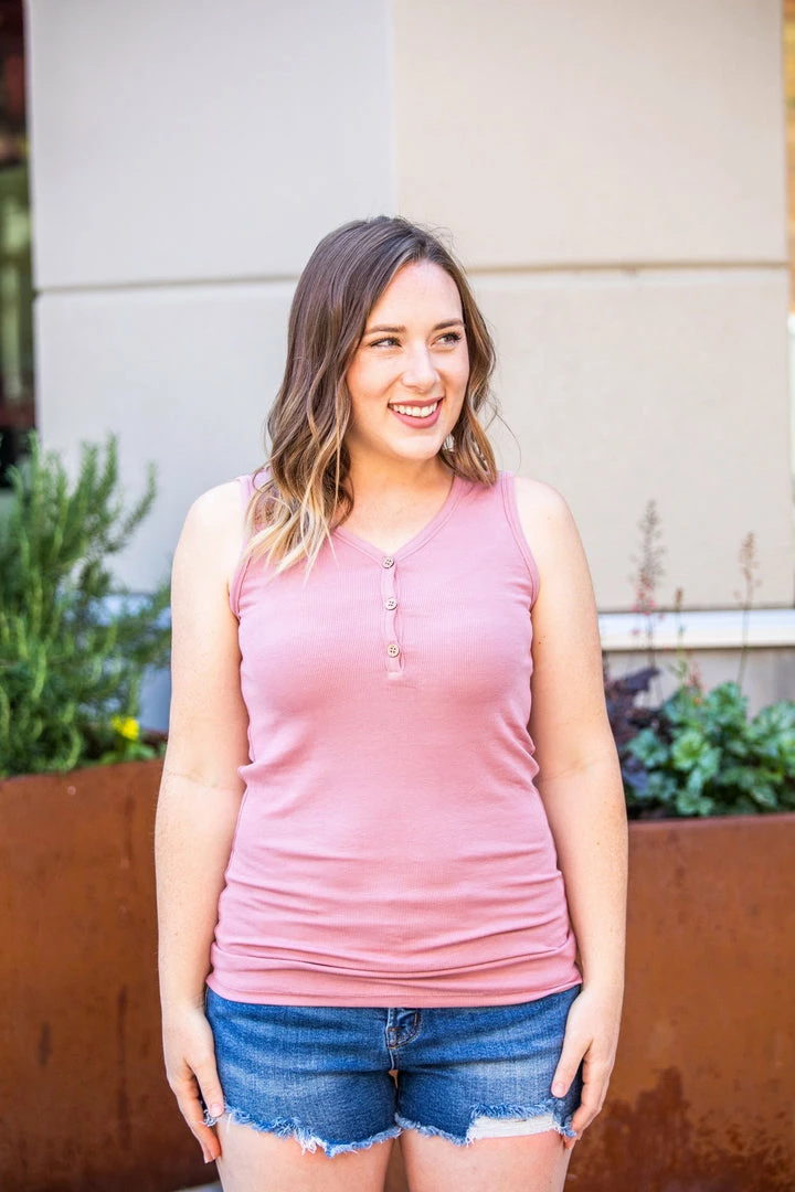 Our Addison Tank is the softest base layering piece you’ll ever feel! With a sweet, and functioning button detail, this tank top is sure to work in your closet all year round. Pair it with shorts in the heat, or a cozy cardigan on cold days.