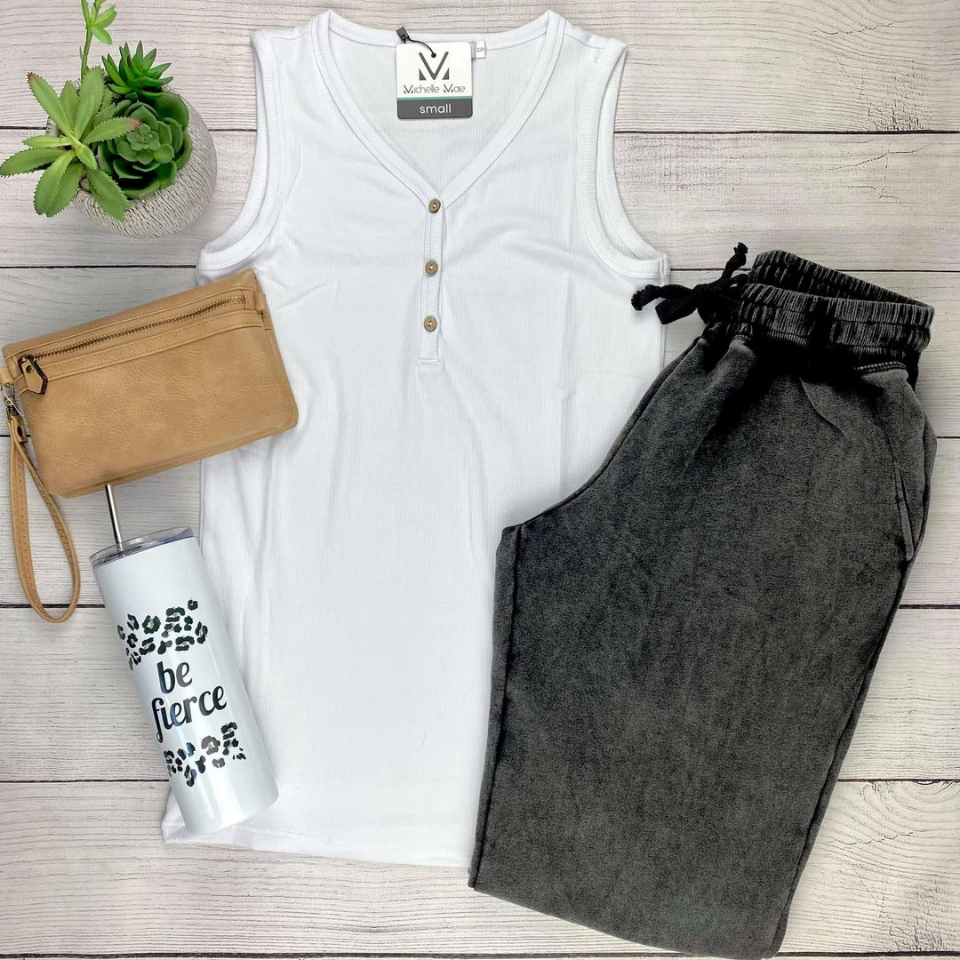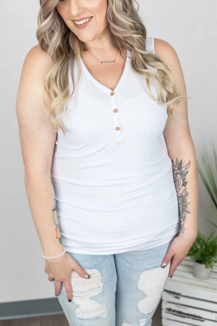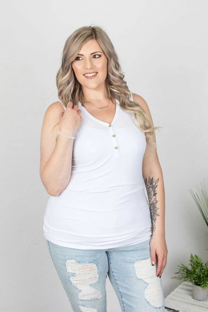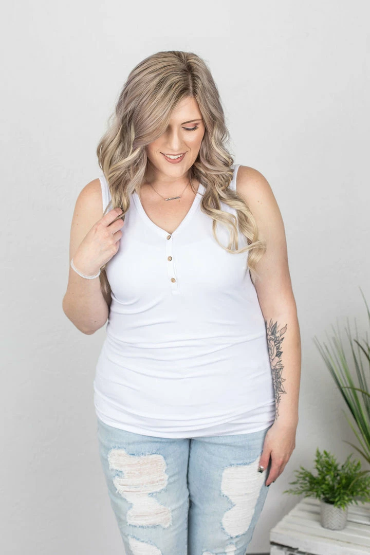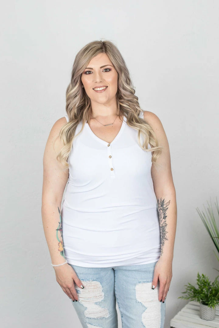 Our Addison Tank is the softest base layering piece you’ll ever feel! With a sweet, and functioning button detail, this tank top is sure to work in your closet all year round. Pair it with shorts in the heat, or a cozy cardigan on cooler days.