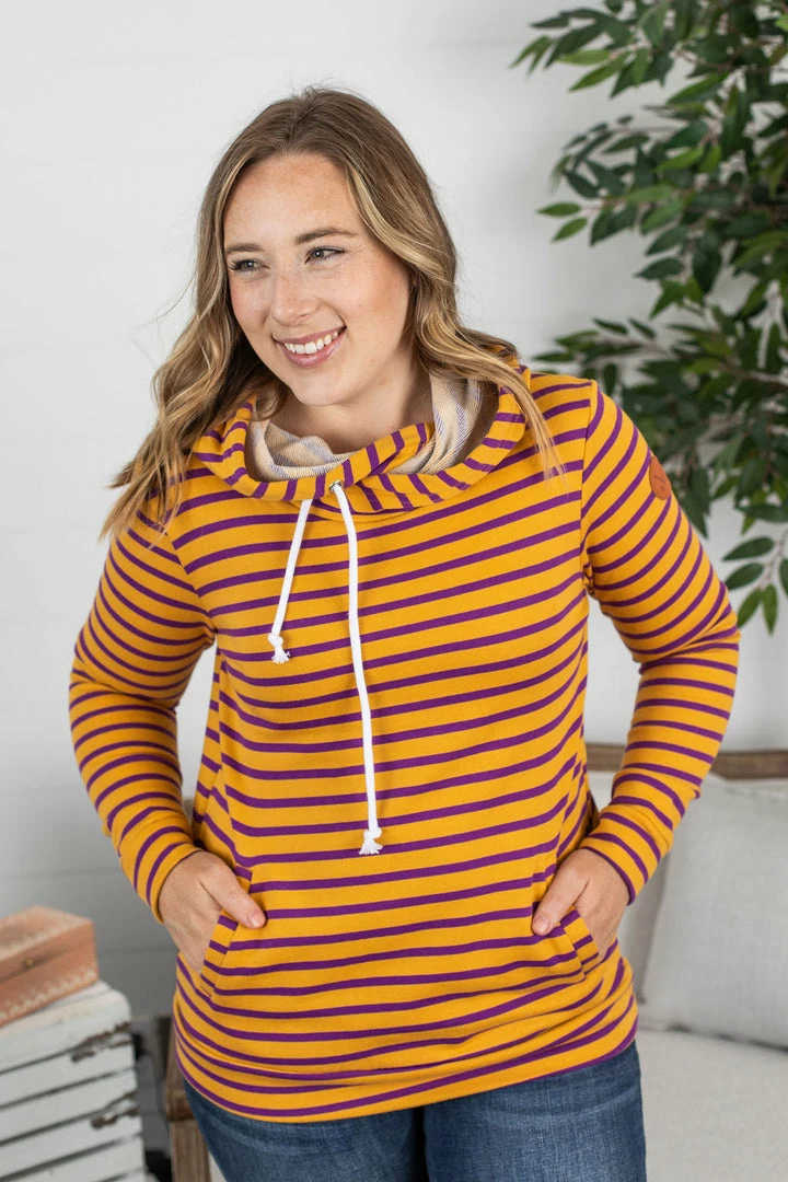 Say hello to your new favorite hoodie! The Ashley features a single-hood design, with off-centered neck detailing, hidden side pockets, standard cuff sleeves, and a very flattering fit! This runs true to size and is a french terry fabric on the interior!