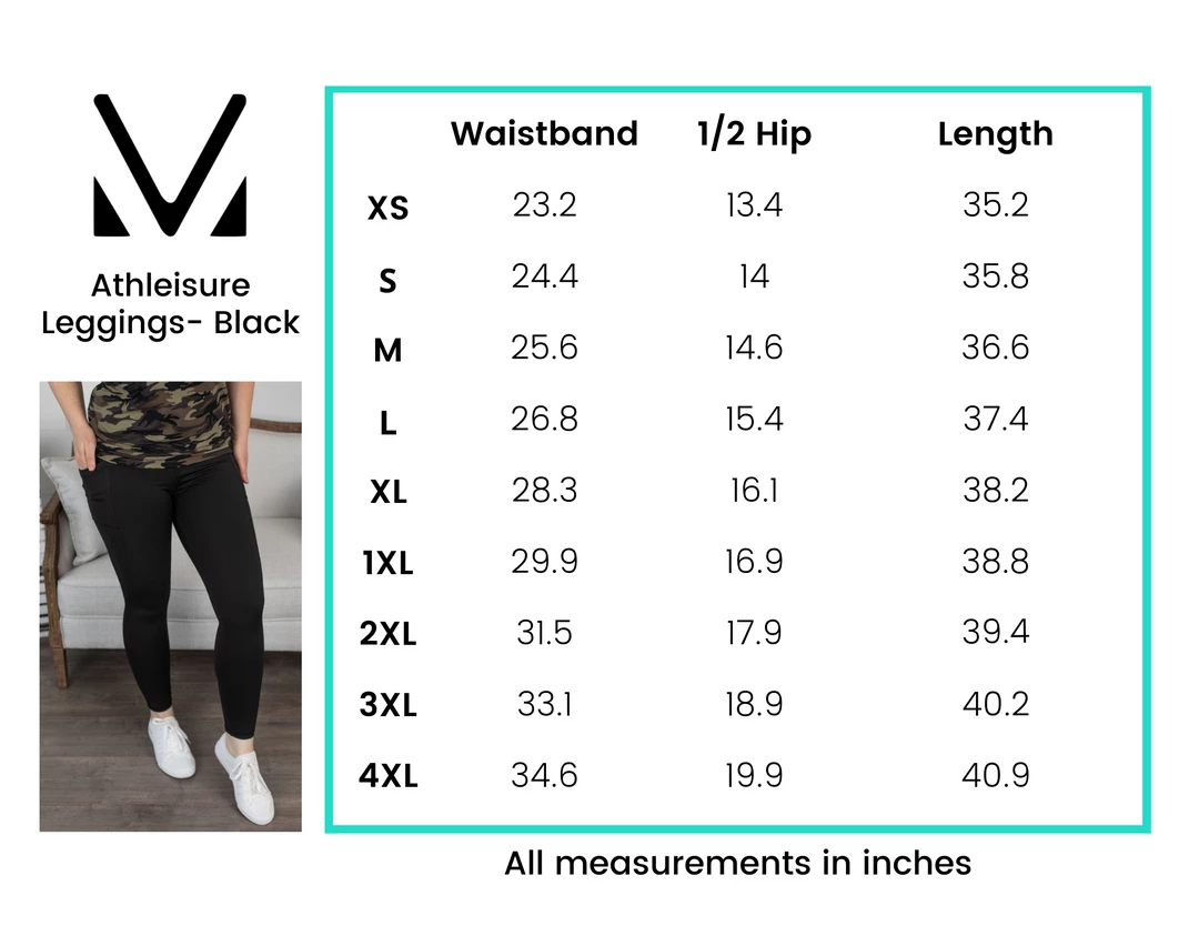Get ready for your new favorite athleisure leggings EVER! We’ve had every size sampled by staff and friends, and the feedback has been “perfection!” These have amazing stretch, aren’t see-through, and have pockets!
