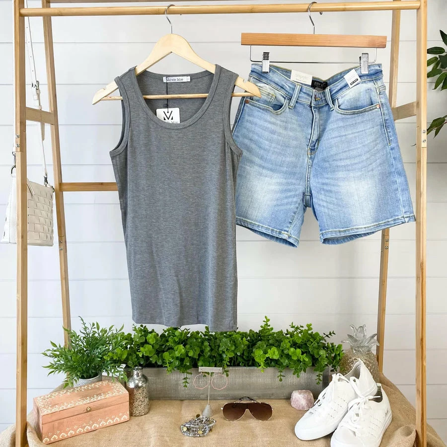 Meet Ava! She is your next go-to everyday tank! This tank has a micro ribbed fabric that is SUPER stretchy with a feminine relaxed fit. Wear it alone or pair it with your favorite cardigan! She will sure be a must have in all colors!ย