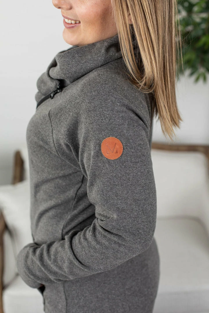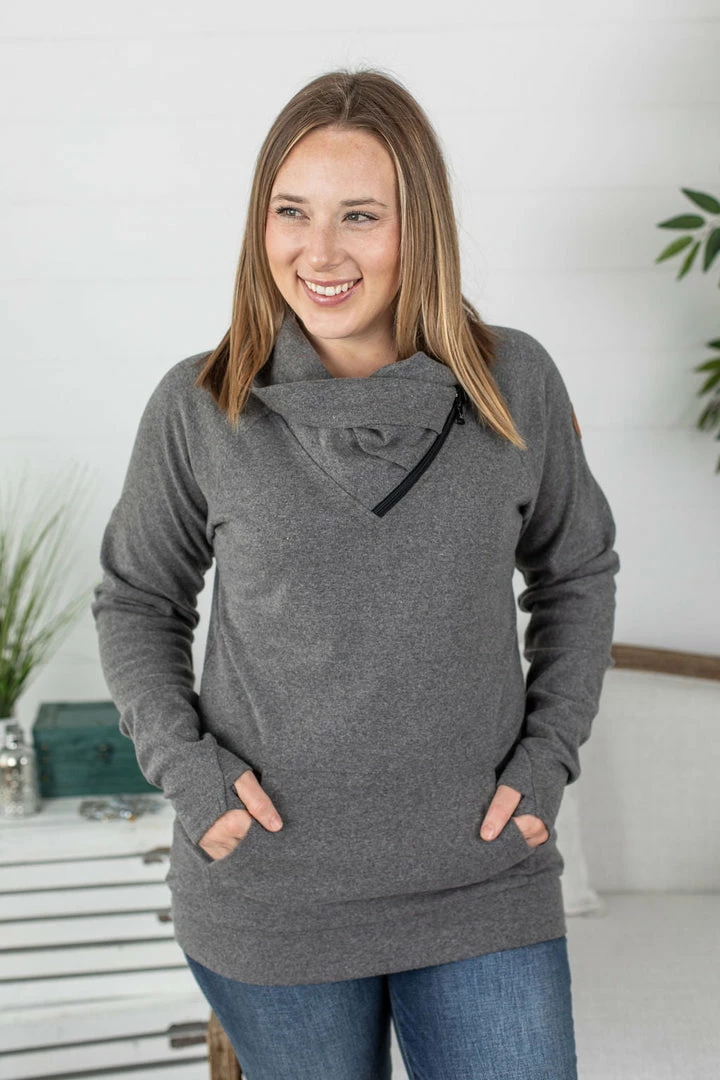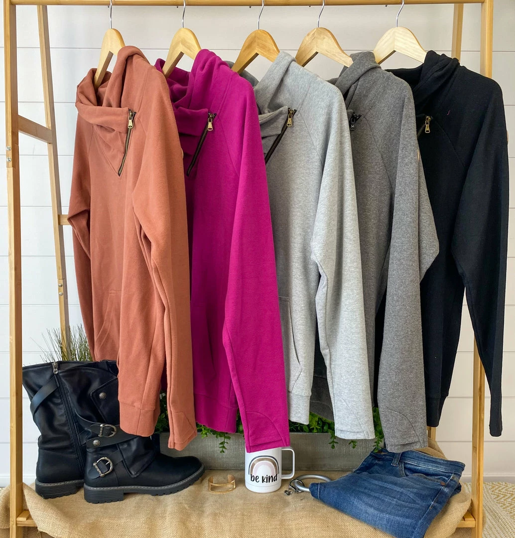 Meet our version 2.0 of our ZipCowl! Now in our best-selling TRIPLE STRETCH FABRIC! We are in love with this new style! Functioning zipper with a classic cowl neck design that’s not too tight. Classic sleeves with thumbholes and front kangaroo pocket.