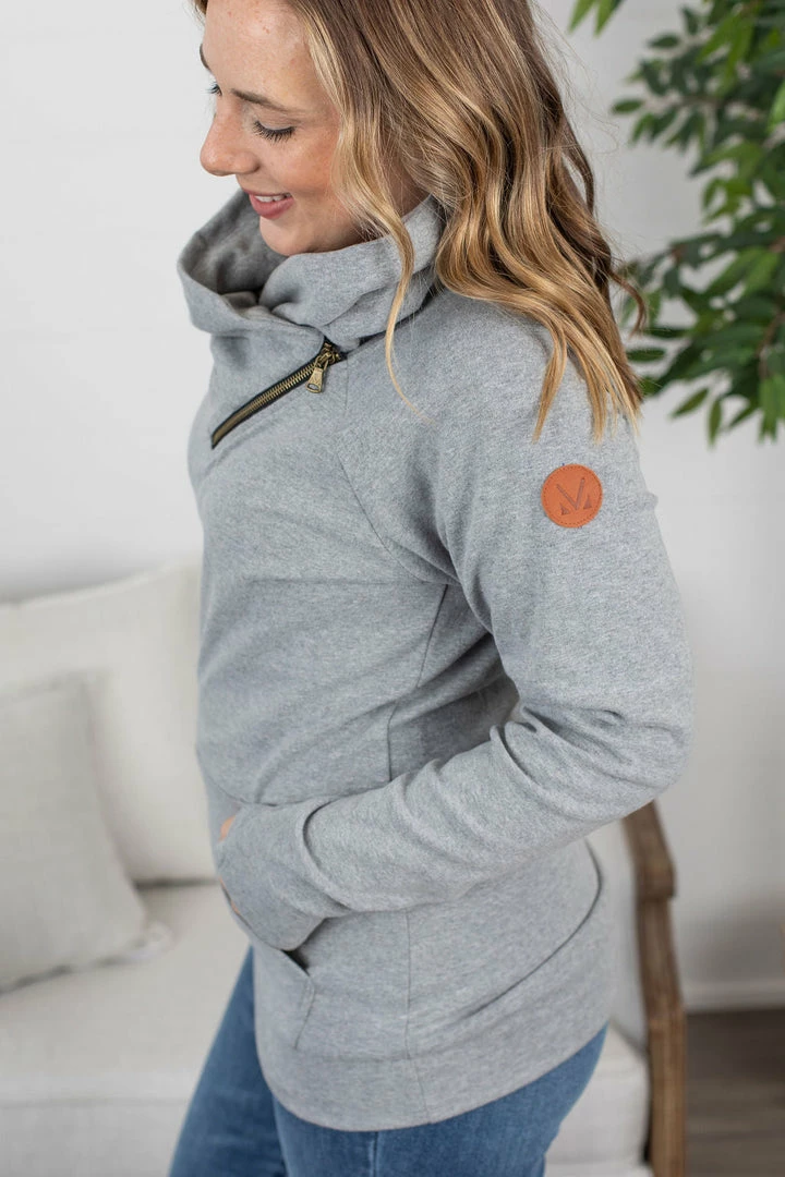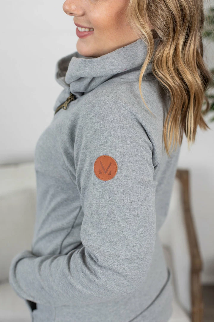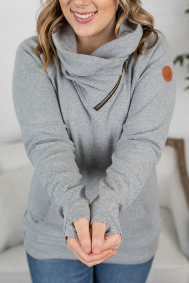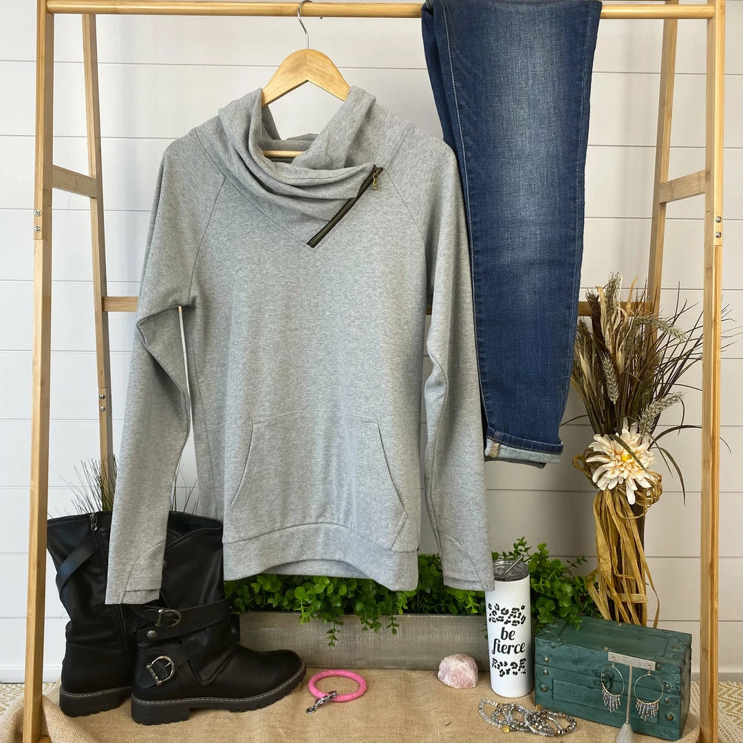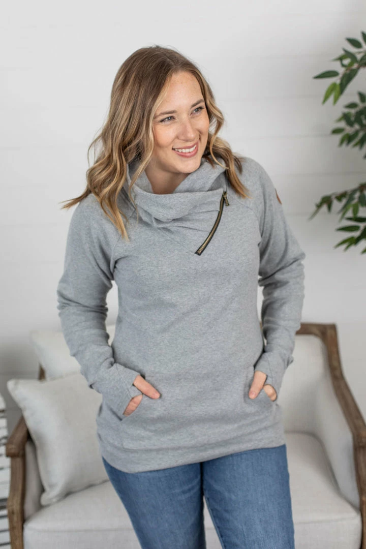 Meet our version 2.0 of our ZipCowl! Now in our best-selling TRIPLE STRETCH FABRIC! We are in love with this new style! Functioning zipper with a classic cowl neck design that’s not too tight. Classic sleeves with thumbholes and front kangaroo pocket.ย