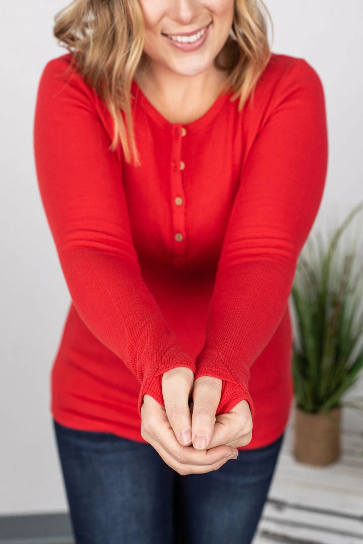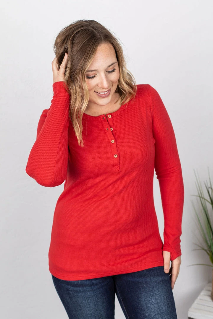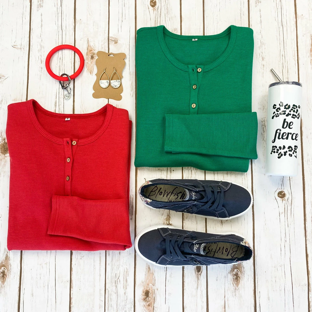 The perfect long sleeve Henley top! Amazing fabric that is warm and sure to keep you cozy during the cooler weather. These also make the perfect pairing for any vest and are super easy to layer! They feature functioning wood buttons as well as thumbholes – which we think is the perfect combination!ย