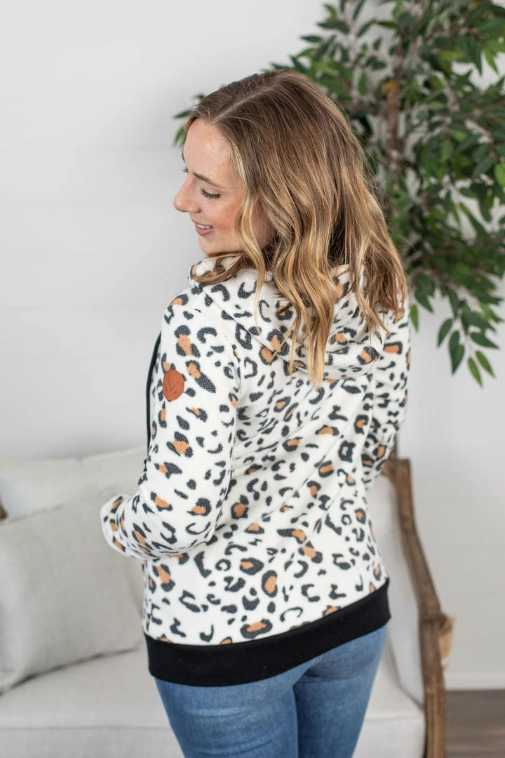 Okay, okay, okay. We know…its LOVE at first sight! Amazing and cozy sherpa fabric with classic (and stretchy) black cuffs and bottom band (with all black accents to match too)! This one is sure to keep you comfy all the time!ย
