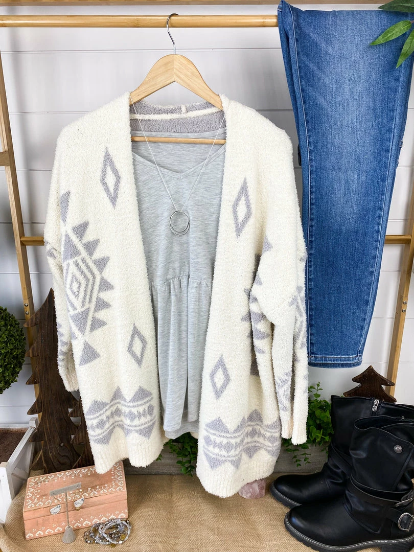 Okay, this cardigan is SOFT (like our best selling blankets)! These have really good stretch, and fit a tad oversized by design (model liked her usual size, size small shown here). The fabric has good weight to it, making it extra cozy!