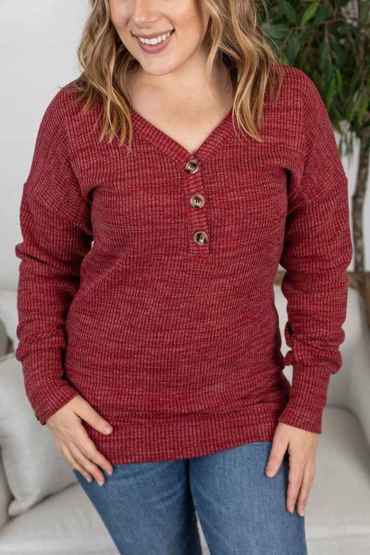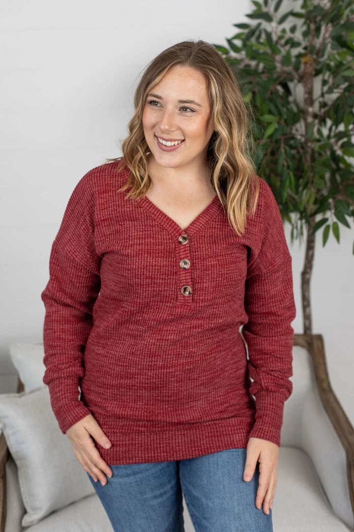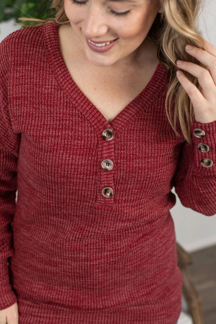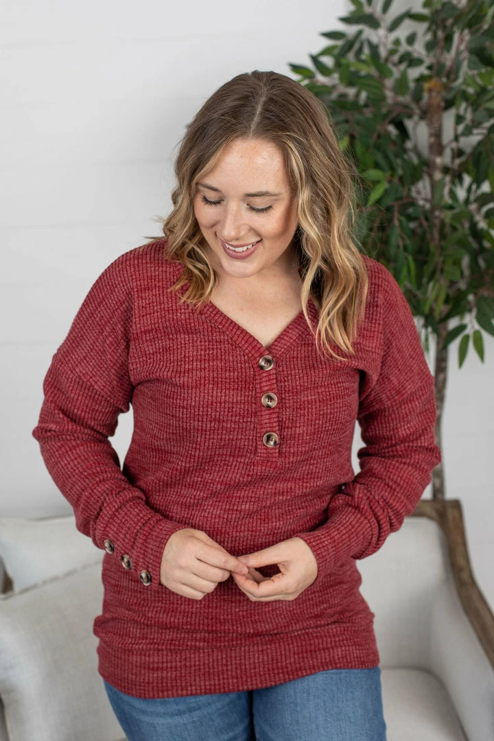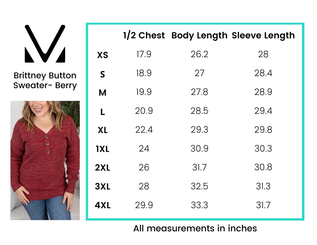 Brittney is your new bestie! These sweaters are soft as a cloud, have functioning buttons at the neckline, with coordinating functioning buttons at the cuff as well. These run true to size (slightly oversized by design) and have good stretch. We love the fit, fabric, texture, and overall feel of these sweaters!