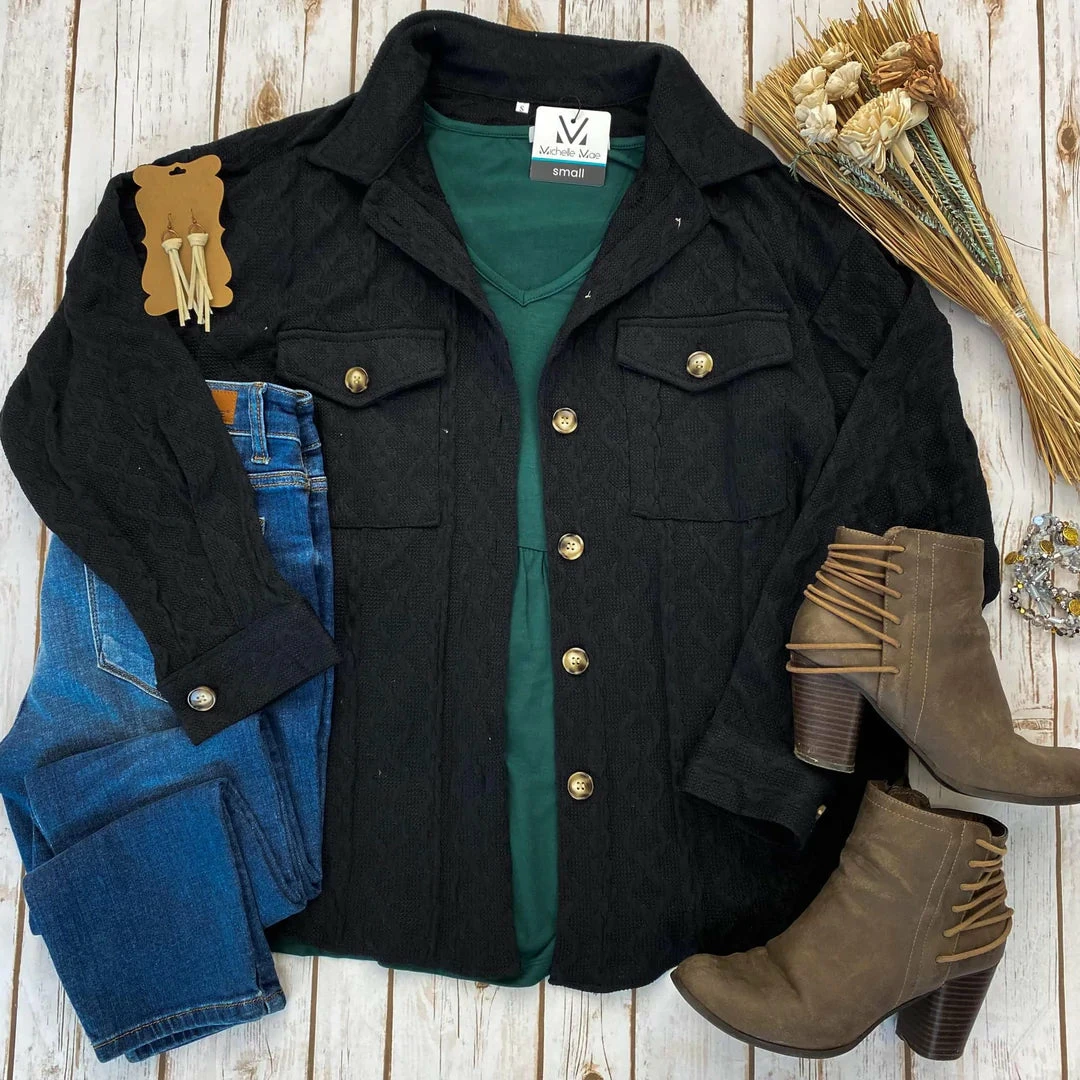 Best reviews of 😍 Michelle Mae LONG SLEEVES Cable Knit Jacket – Black 🔥
