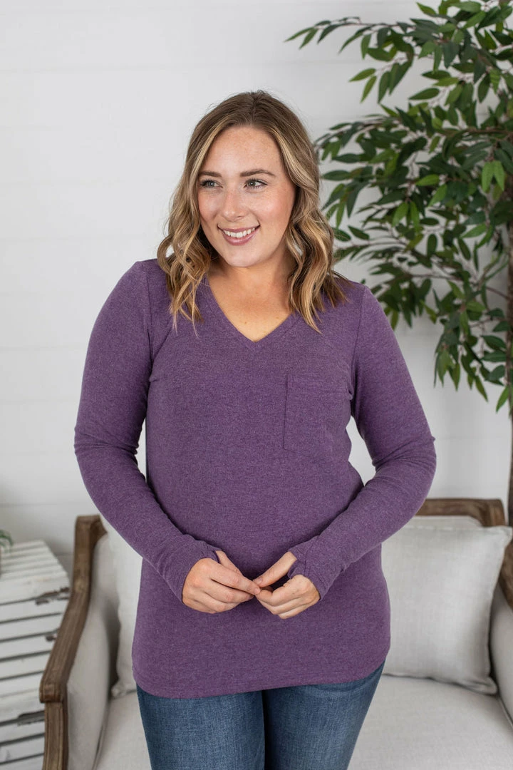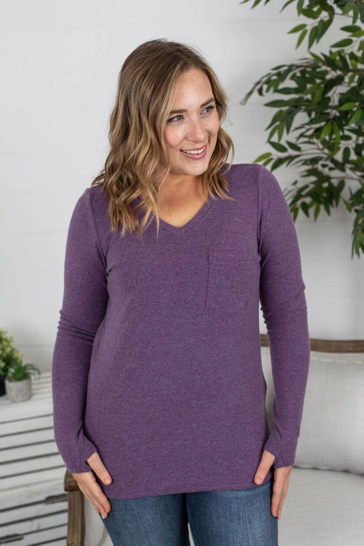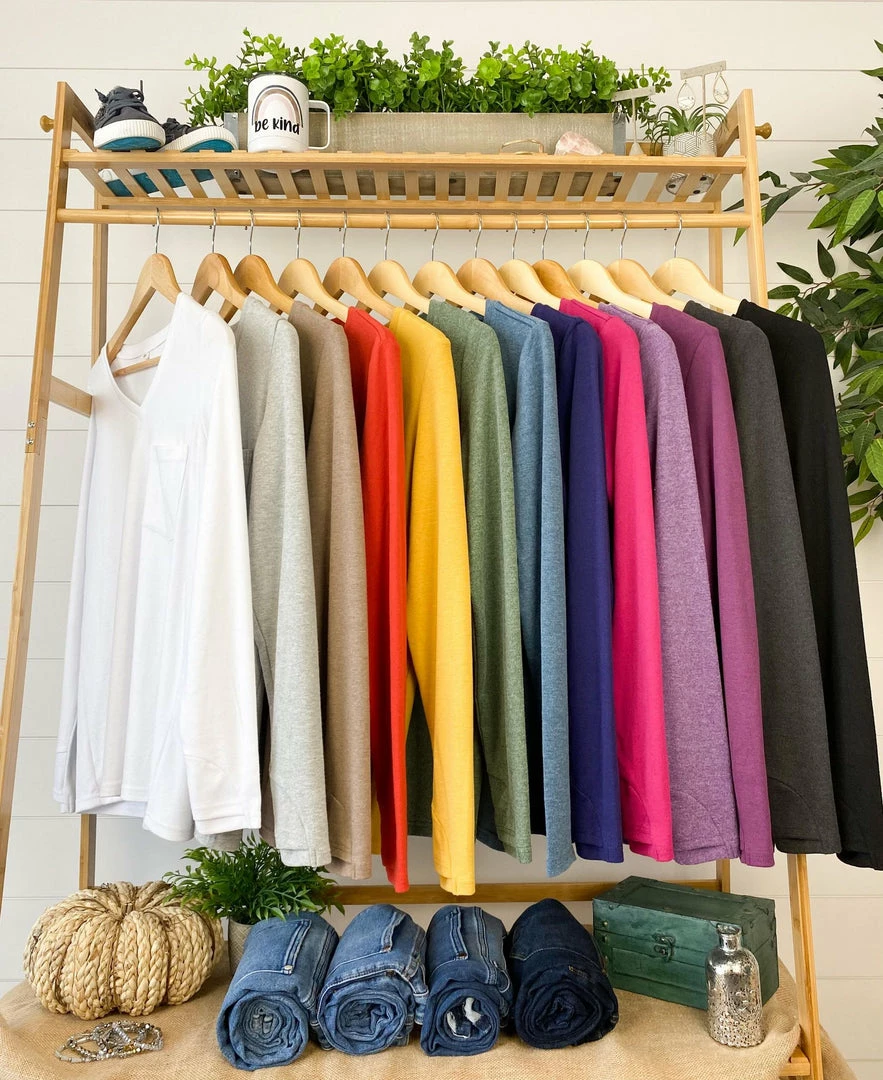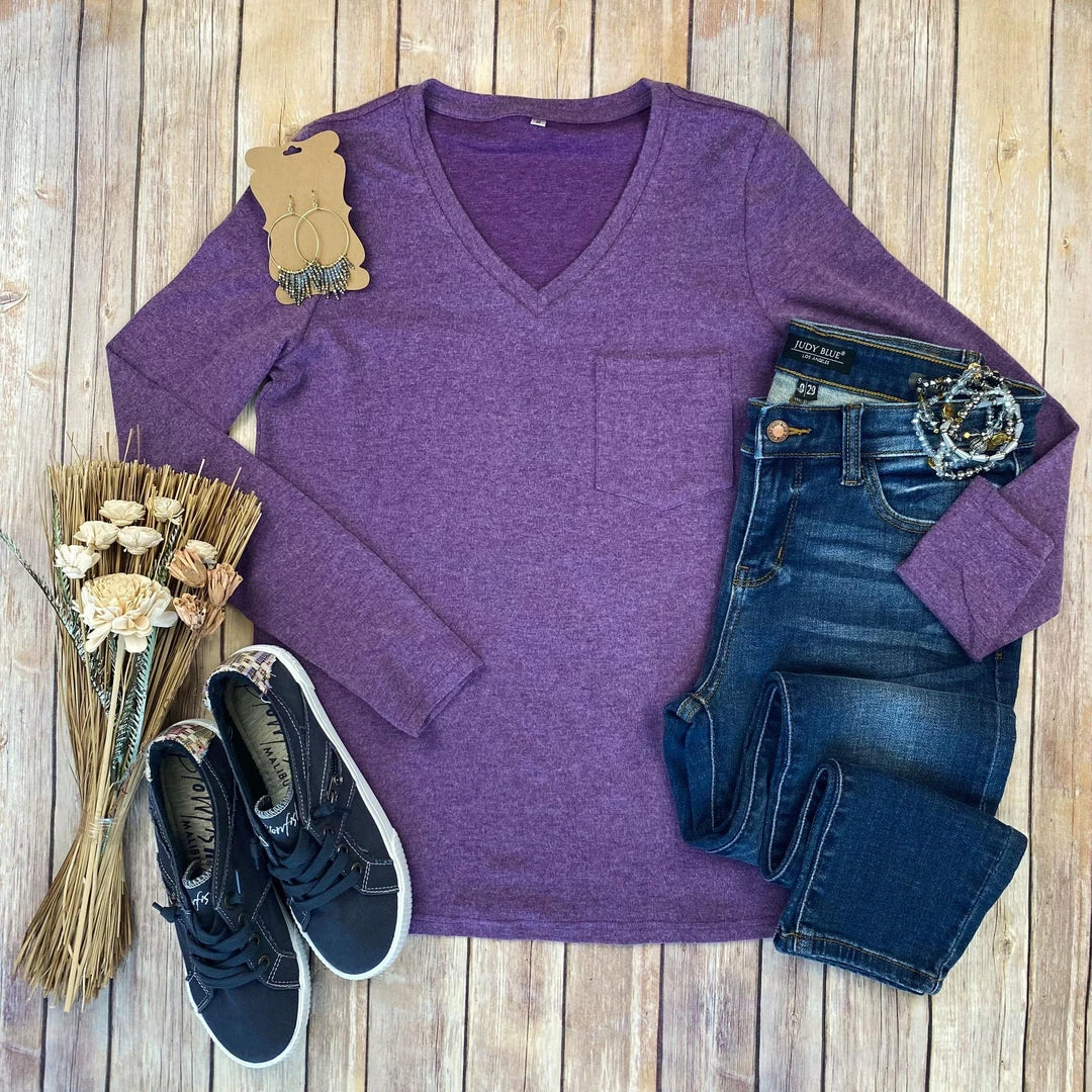 The perfect long sleeve pocket top! Amazing fabric that is warm and sure to keep you cozy during the cooler weather. These also make the perfect pairing for any vest and are super easy to layer! The are VERY soft and stretchy too, plus they have a front pocket as well as thumbholes – which we think is the perfect combination!