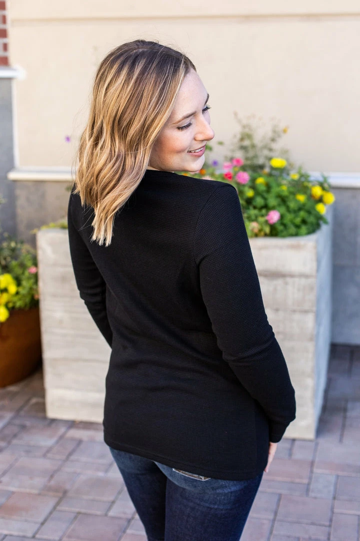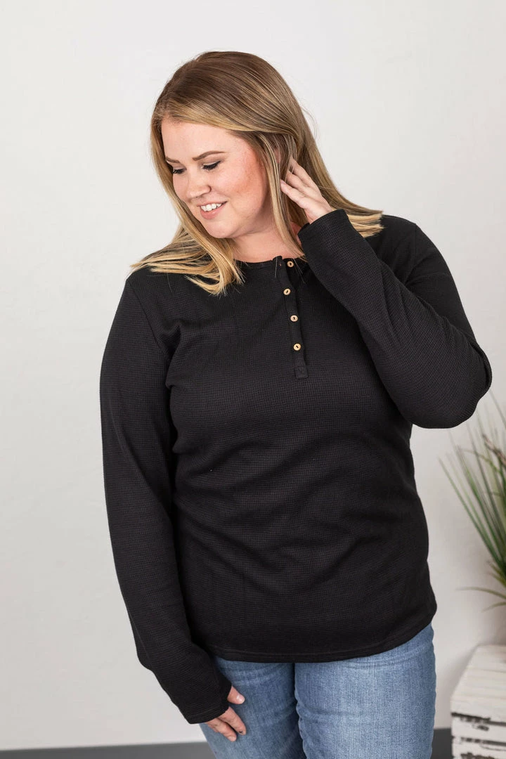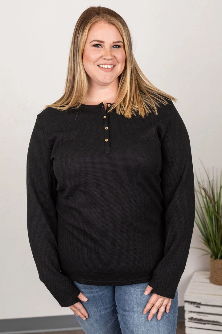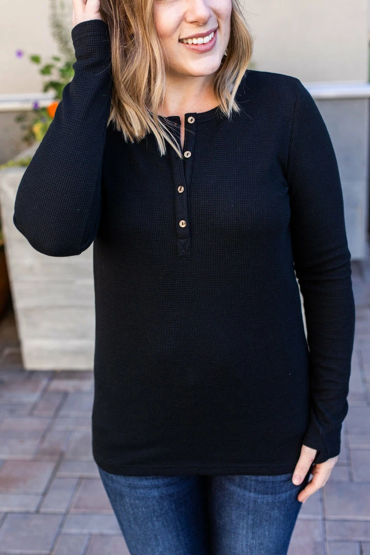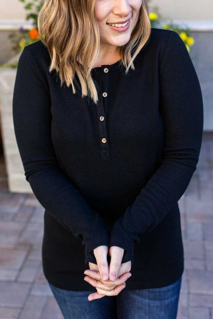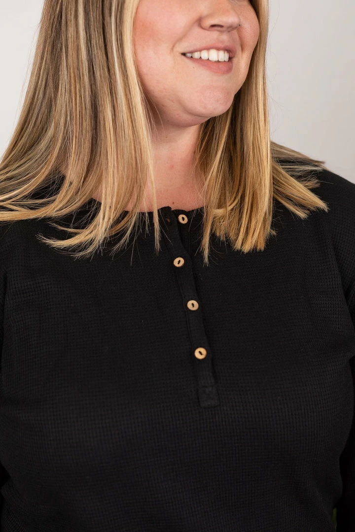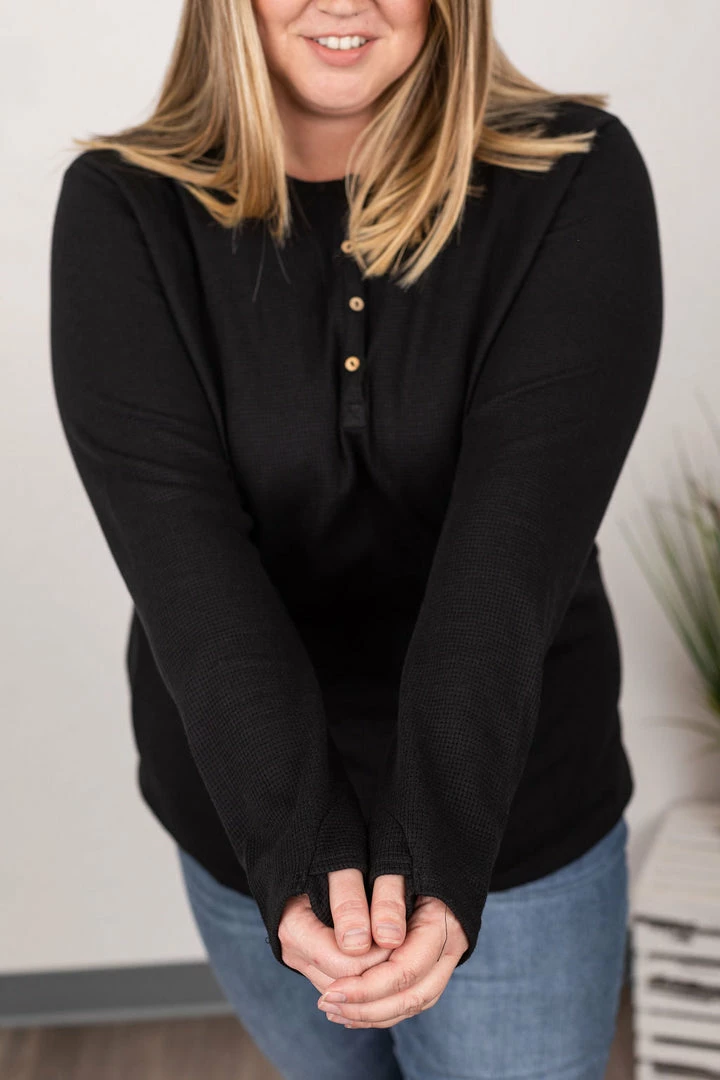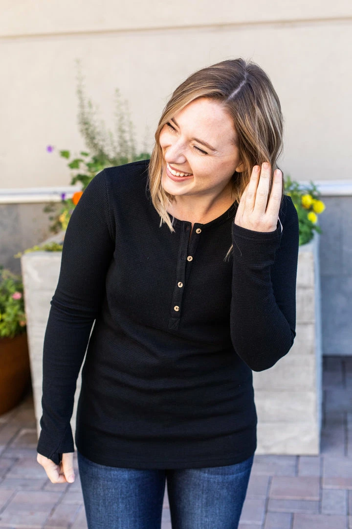 The perfect long sleeve Henley top! Amazing fabric that is warm and sure to keep you cozy during the cooler weather. These also make the perfect pairing for any vest and are super easy to layer! They feature functioning wood buttons as well as thumbholes – which we think is the perfect combination!