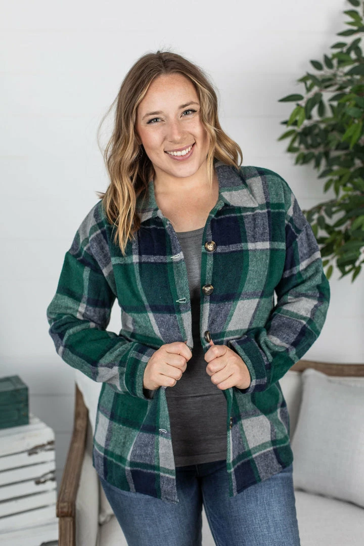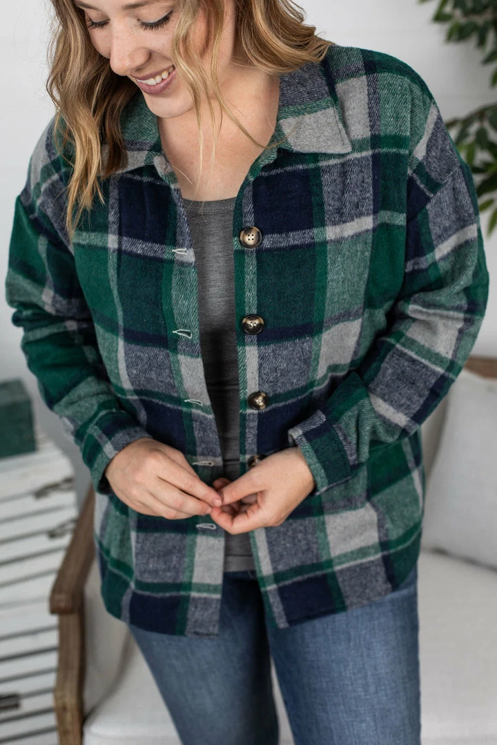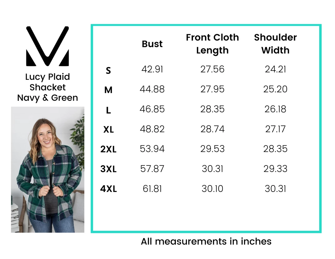 Meet Lucy! She’s a tad different than all of our other plaid flannel jackets – she has no pockets of any kind, and has a slightly tapered backside hem line!