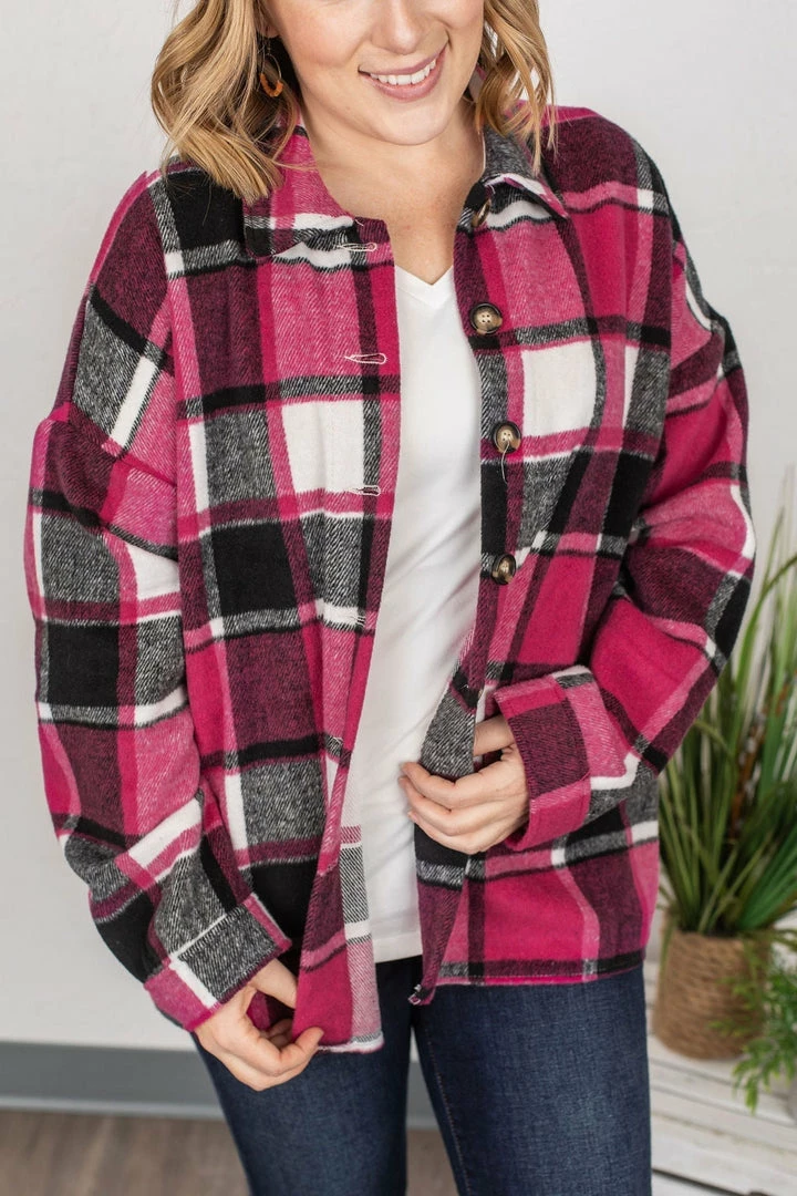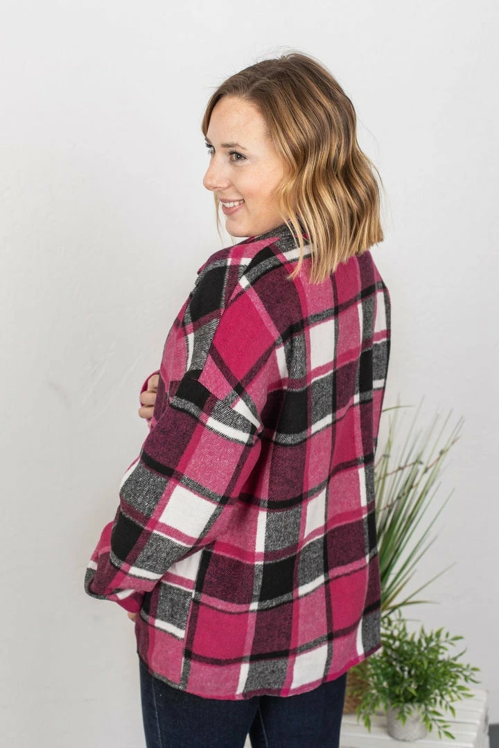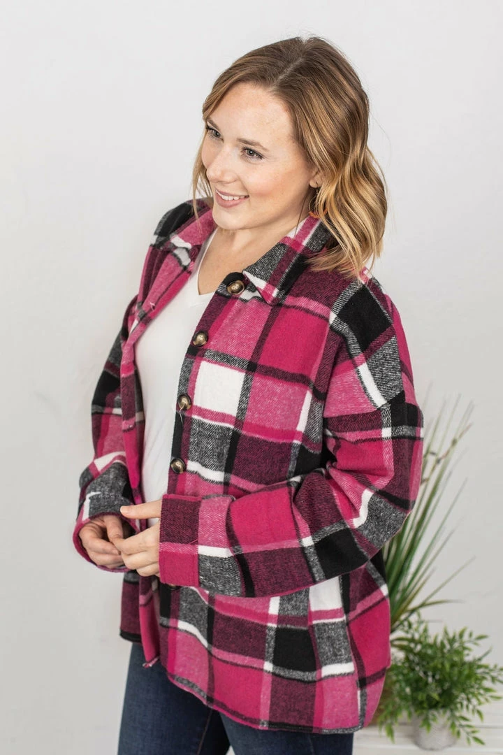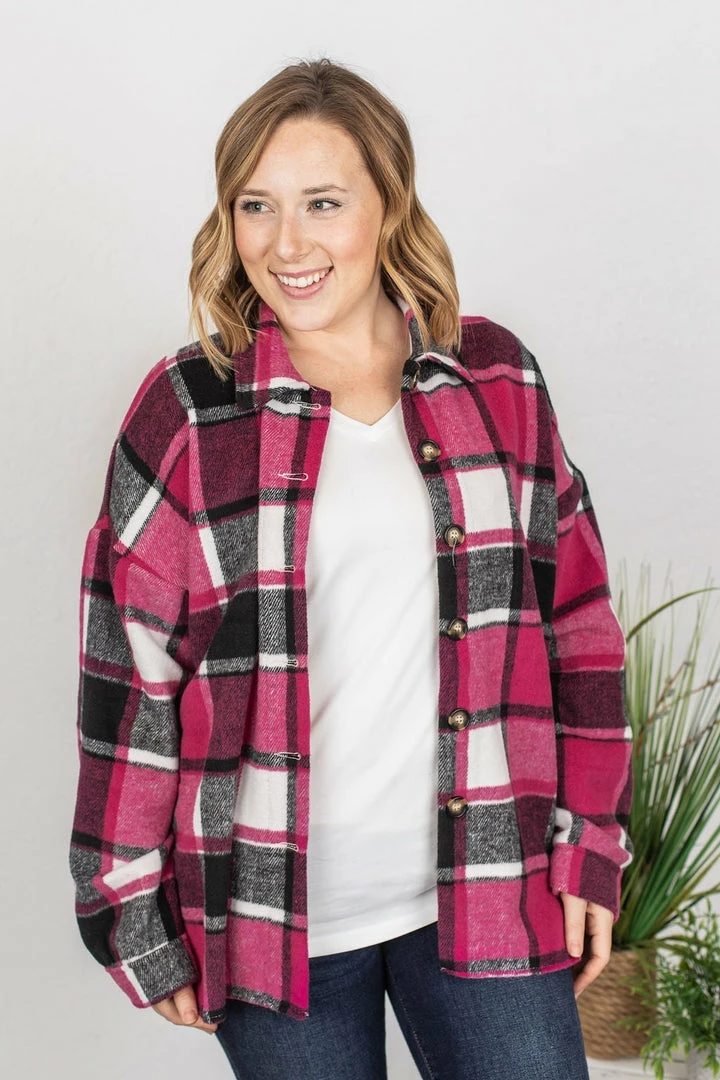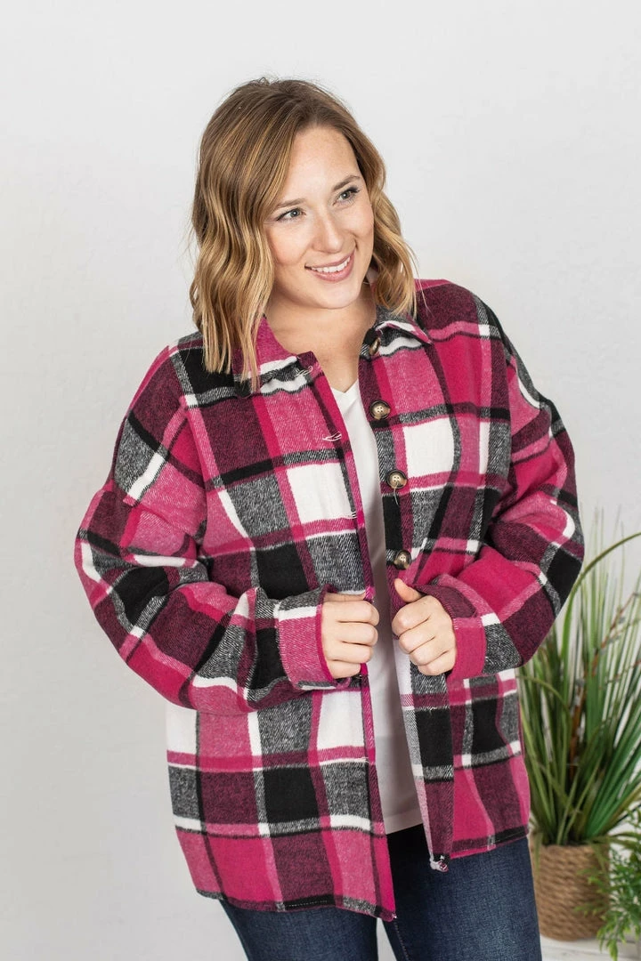 Meet Lucy! She’s a tad different than all of our other plaid flannel jackets – she has no pockets of any kind, and has a slightly tapered backside hem line! Very easy to dress up and down – and pair with lots of things!