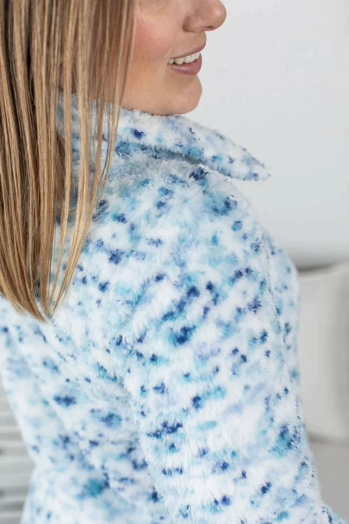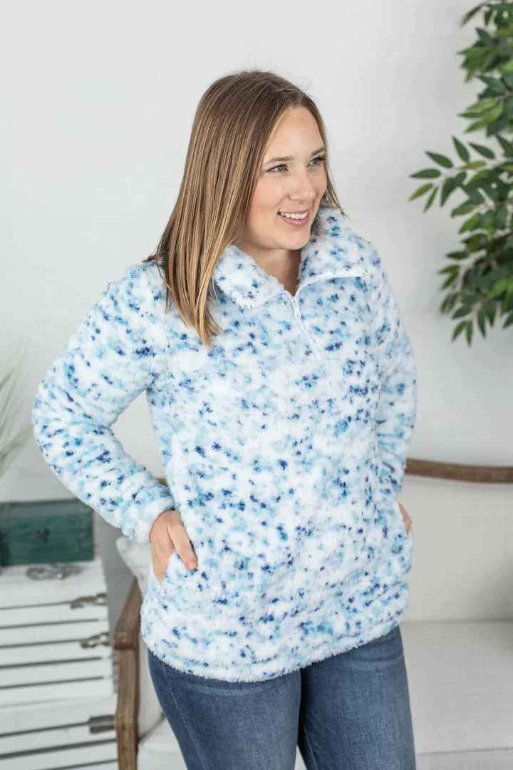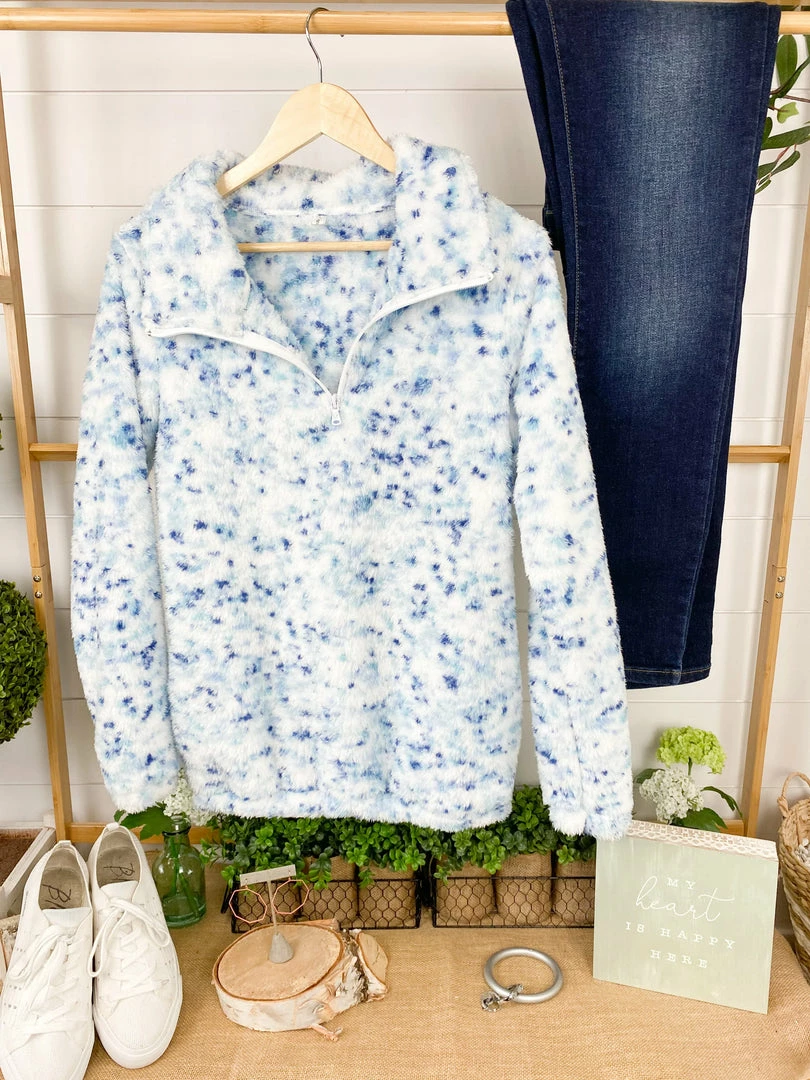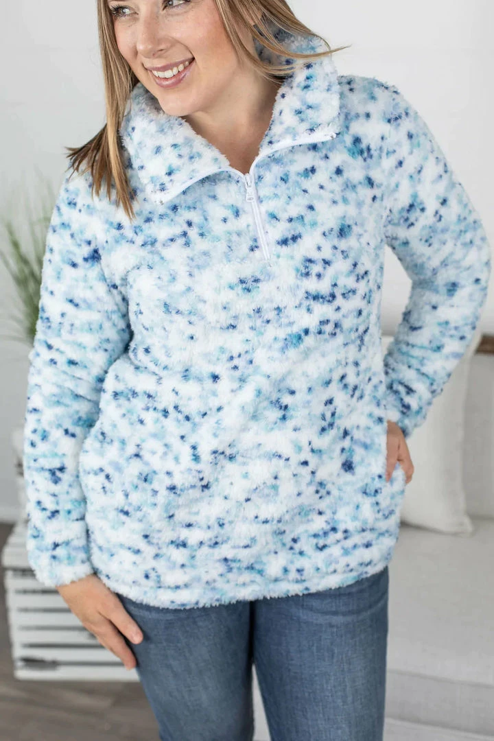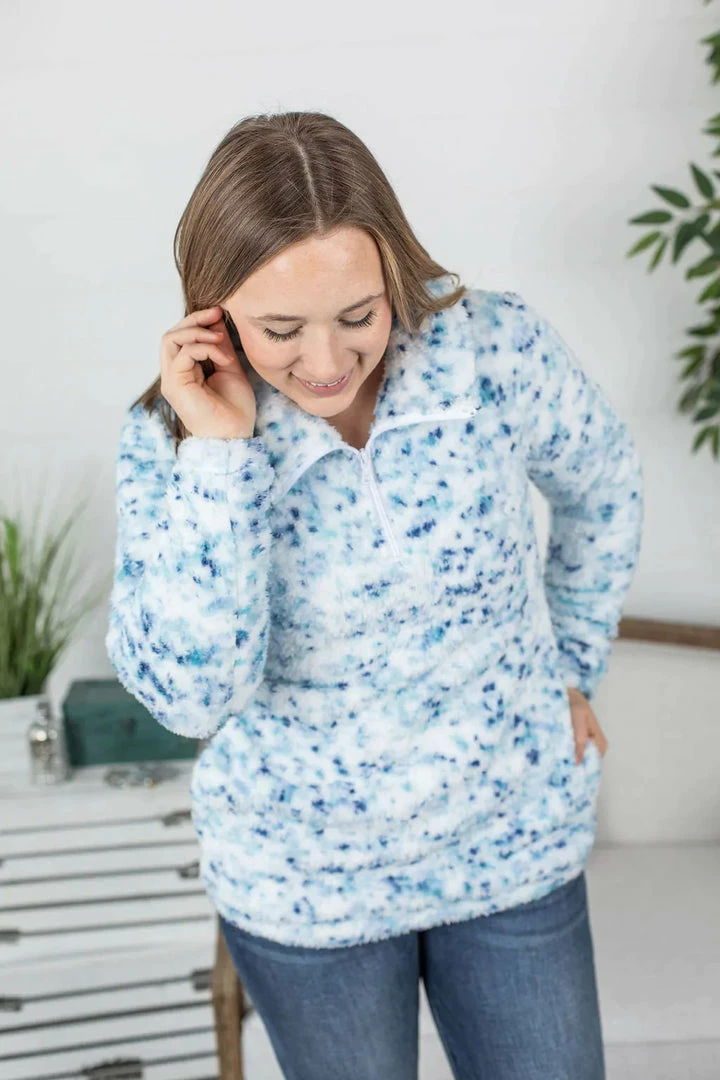 You can see the comfort in the photos! Very soft sherpa fabric with elastic bottom band and wrist cuffs, with a quarter zip front! Plus…hidden pockets! This one is sure to keep you comfy all the time!