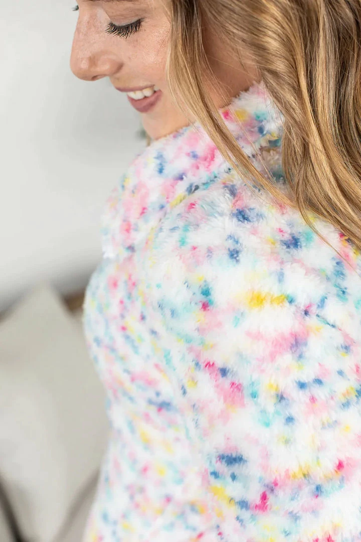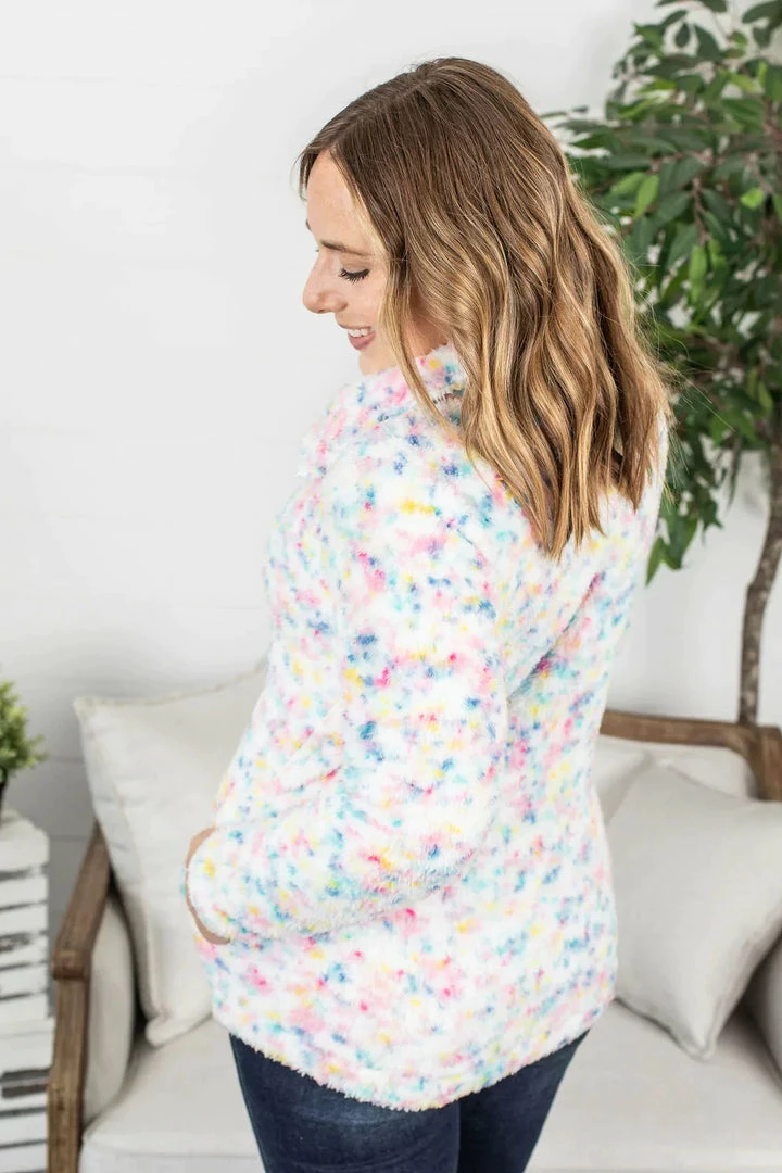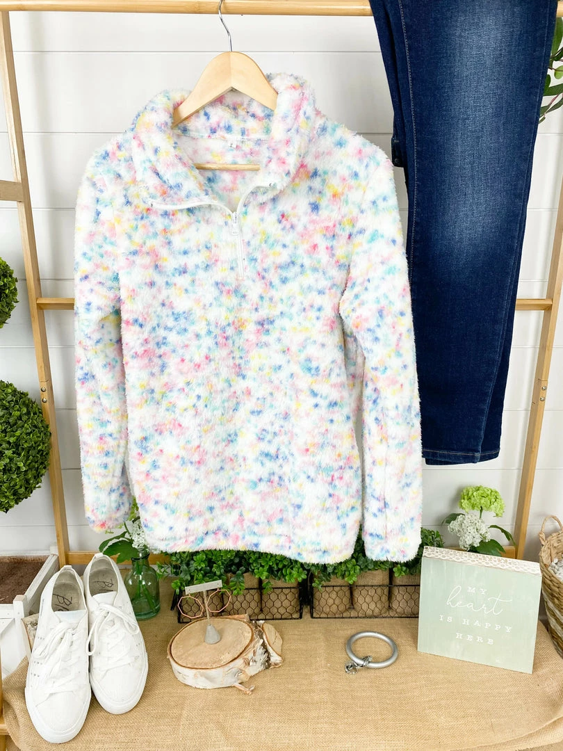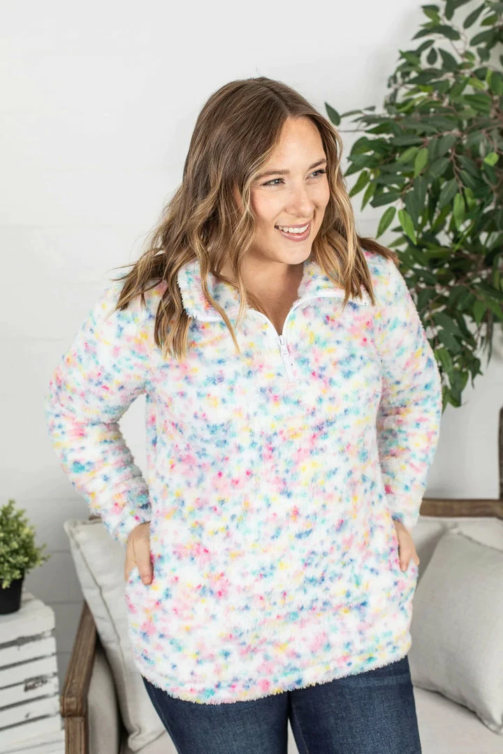 You can see the comfort in the photos! Very soft sherpa fabric with elastic bottom band and wrist cuffs, with a quarter zip front! Plus…hidden pockets! This one is sure to keep you comfy all the time!