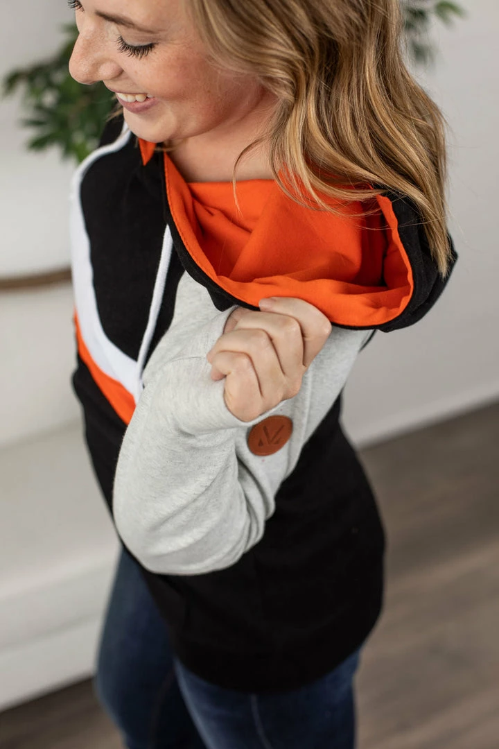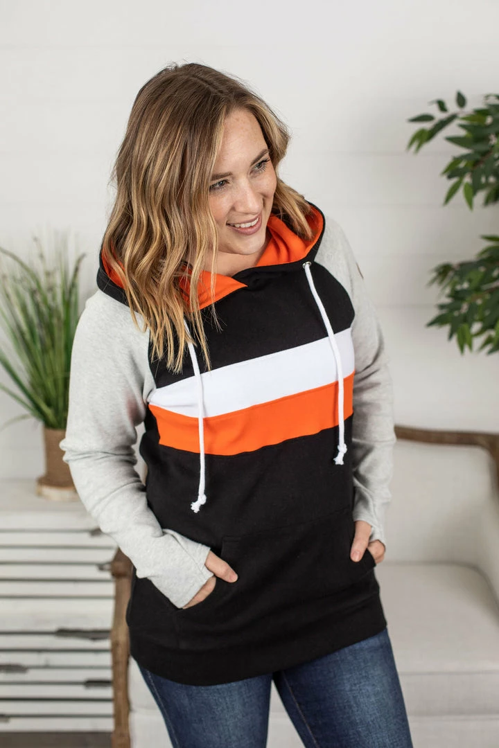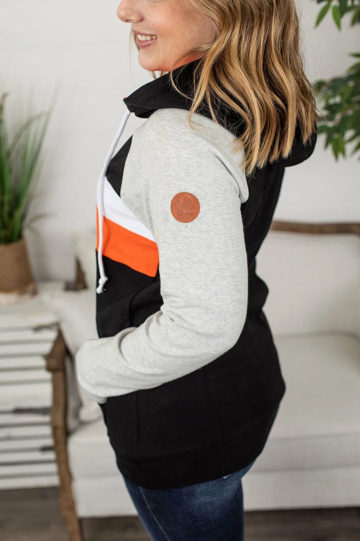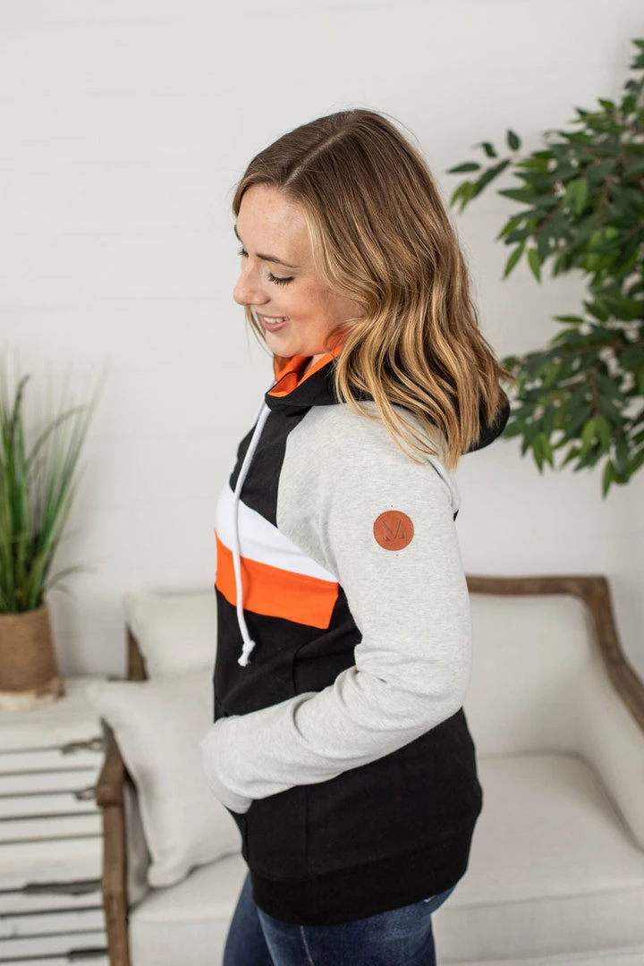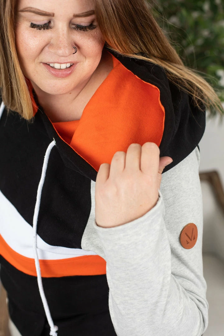Get ready to get cozy! The Ryan features your favorite triple stretch fabric, a single-hood design with coordinating interior lined hood, centered neck detailing, front kangaroo pocket, thumbholes, and fun colorblocking design as well, and accent strings!