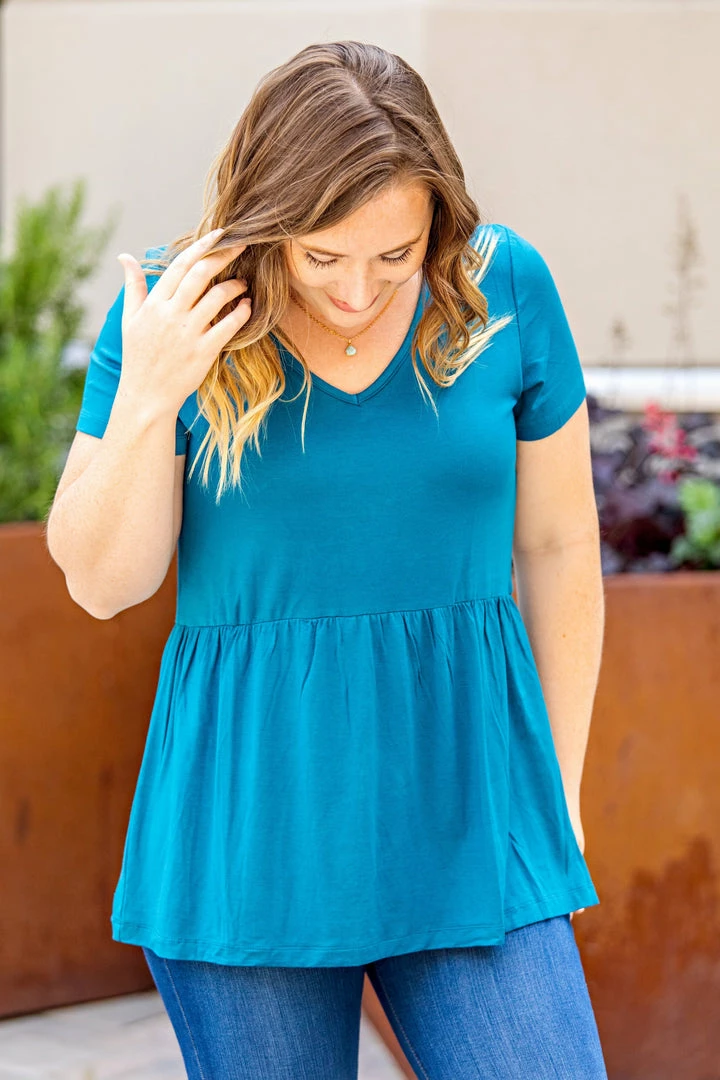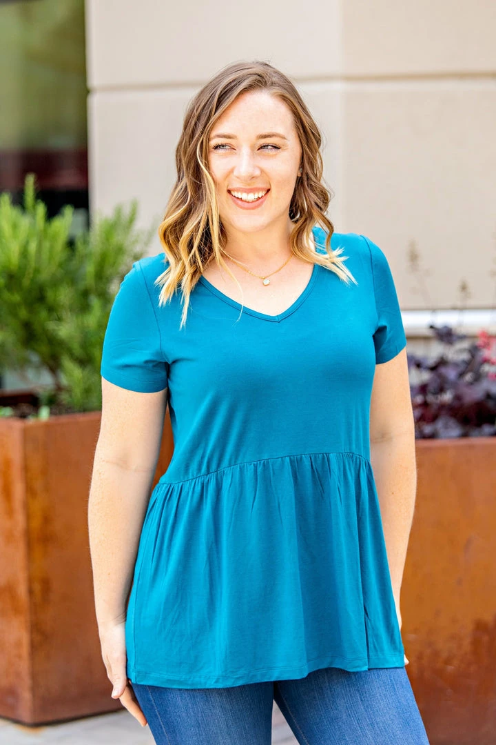 Sweet, classic and full of fun, Sarah is sure to be the perfect fit in any closet. Not too baby-doll, and not too peplum… an amazing shape and fit that provides an extremely flattering look for every woman. The fabric is very soft and has high stretch.