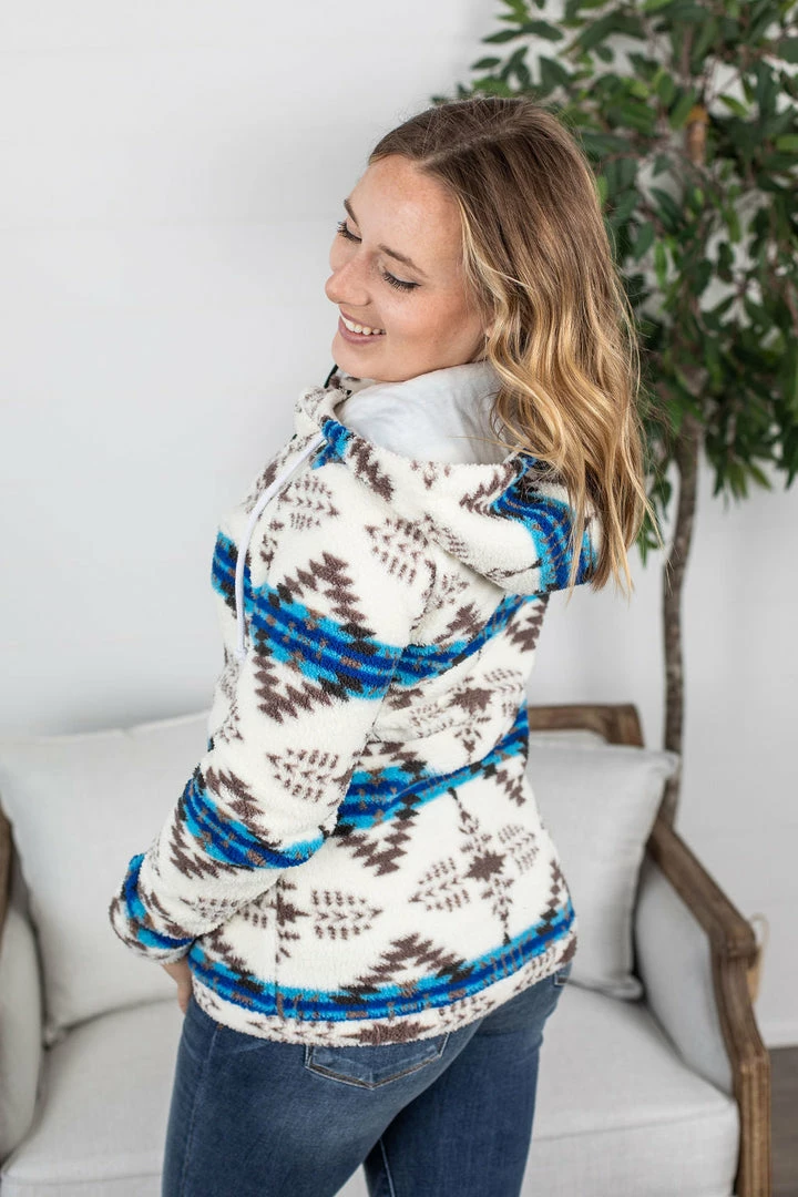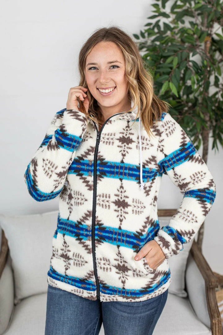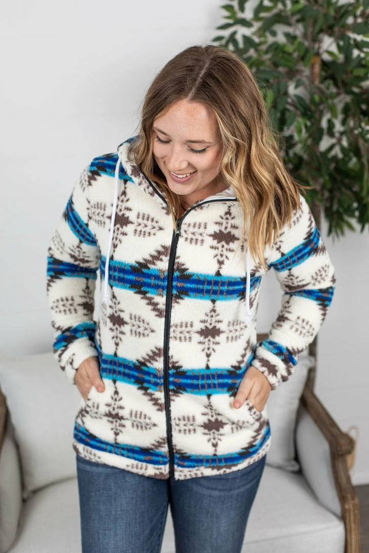 Two of our favorite things: sherpa and a fullzip hoodie are now in ONE! Amazing and cozy sherpa fabric with classic (and stretchy) wrist cuffs and bottom! This one is sure to keep you comfy all the time! Interior of hoodie has a cream liner.