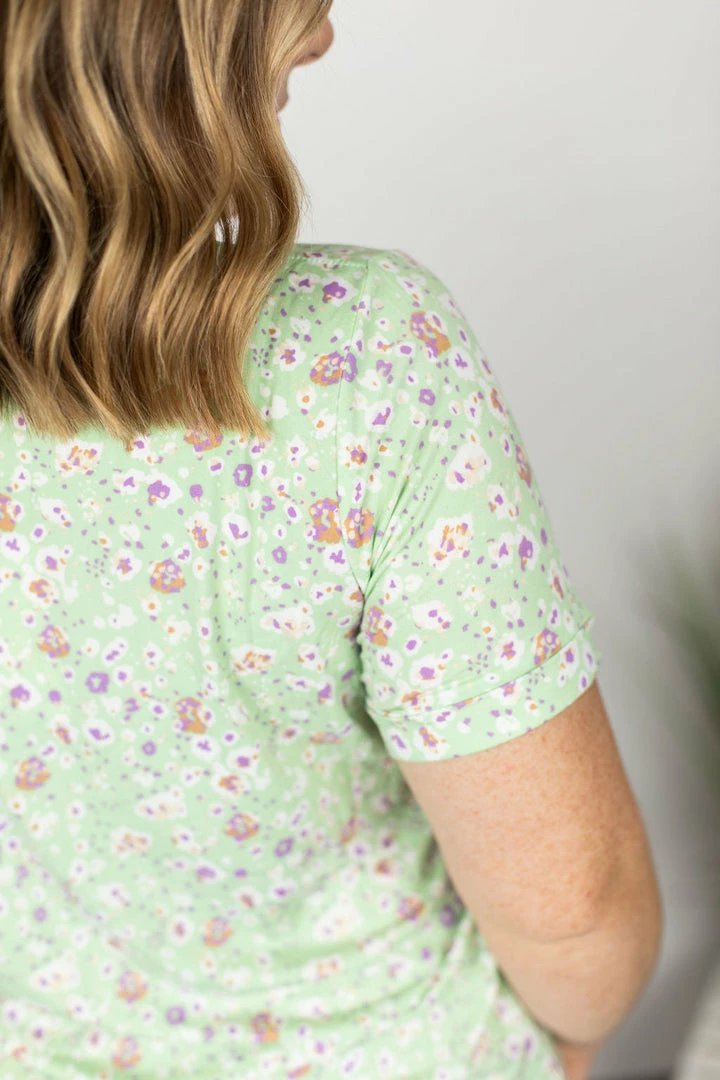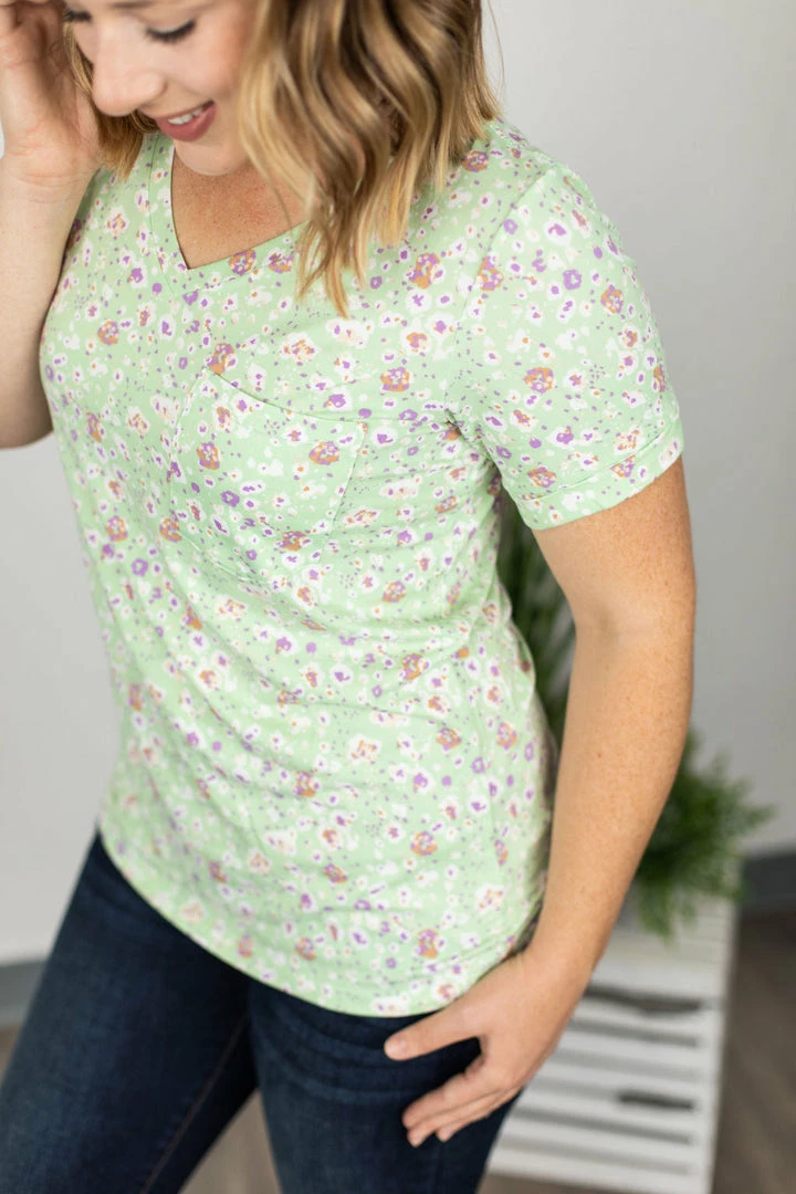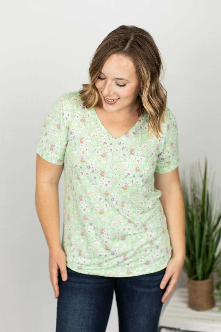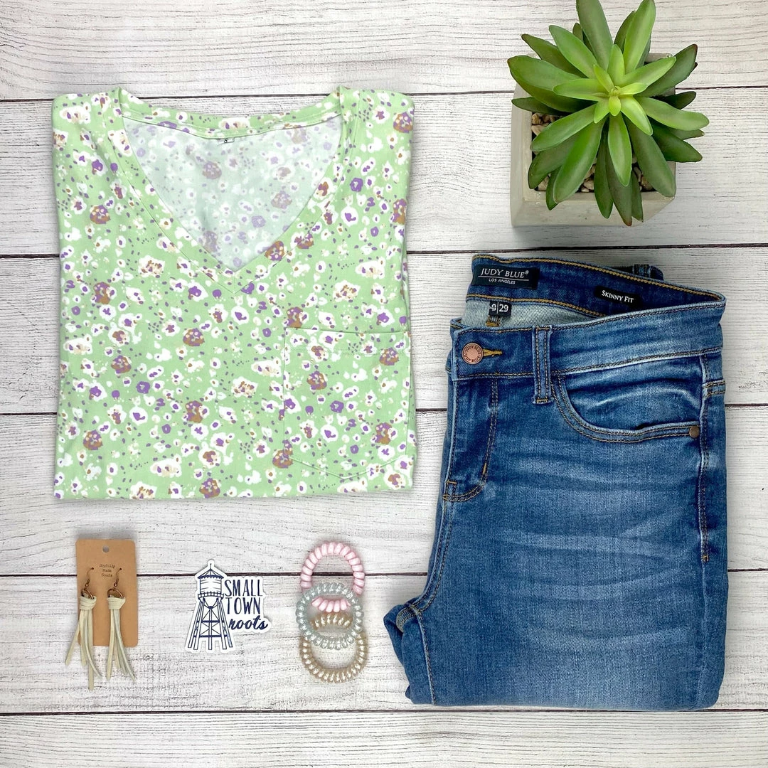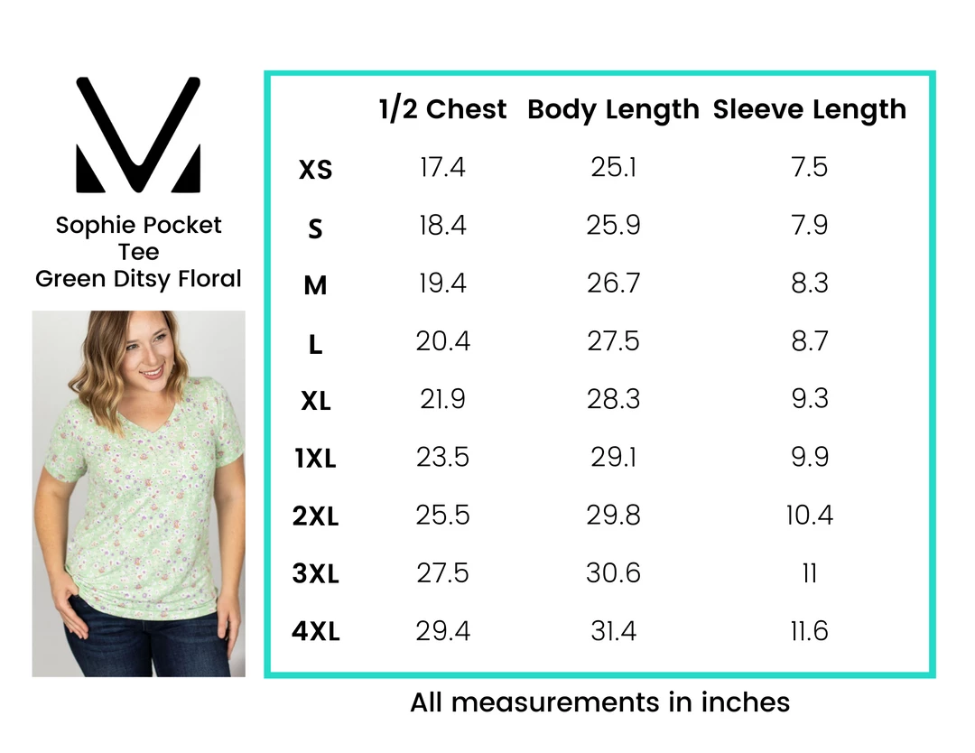 Sophie pocket tee! These are made with your favorite buttery soft fabric! A high stretch tee with the v neck, cuffed sleeves, and a straight pocket accent! Great to wear all year long and sure to be your next favorite grab and go top!ย