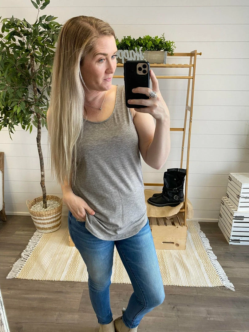 Meet Tiffany! She’ll quickly become one of your favorite and go-to tanks all year! The fabric is lightweight and breathable, with amazing stretch. It’s also wide enough to wear your favorite bra, and has a flattering scoop design along the front and back of the tank.ย