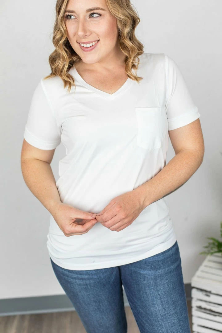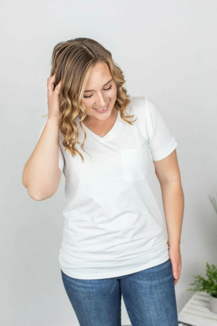 These are made with your favorite buttery soft fabric! These have high stretch and run true to size! V-Neck, cuffed sleeves, and a straight pocket accent!