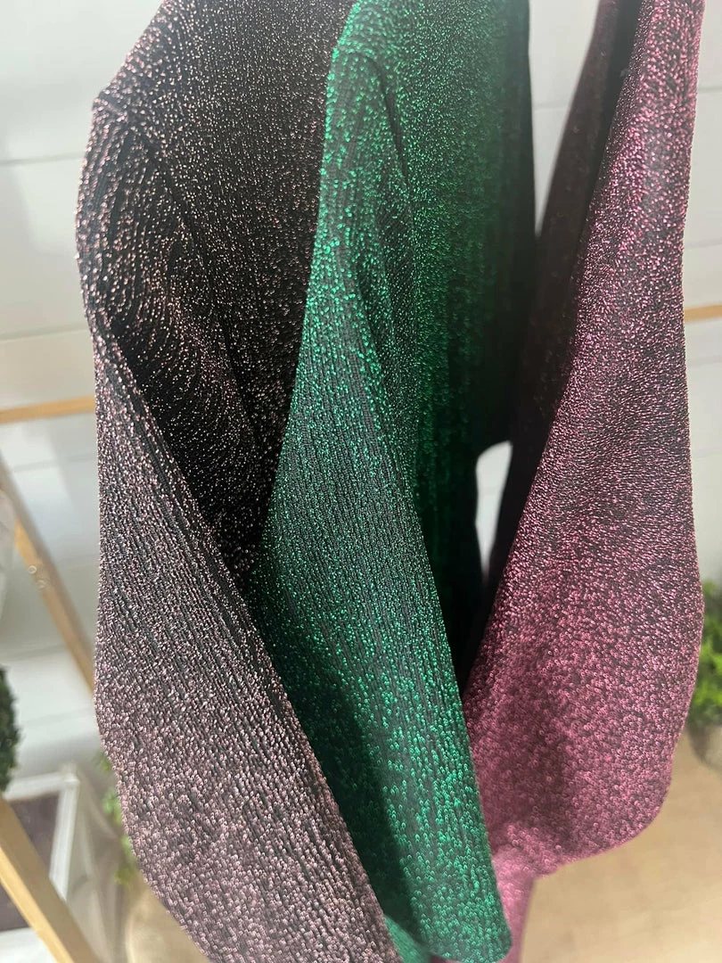 - Fabric: 55% polyester, 40% metallic, 5% spandex