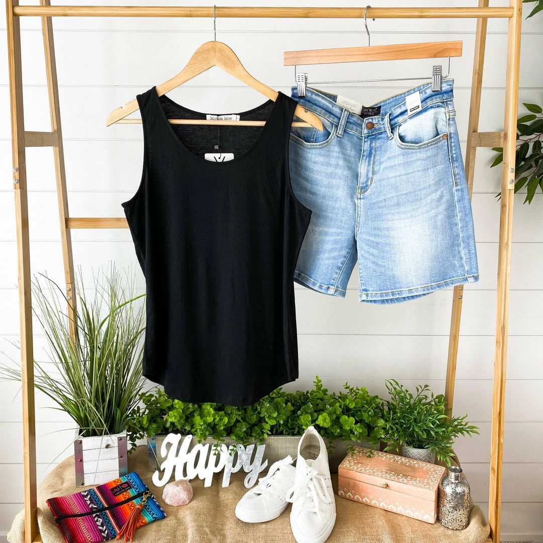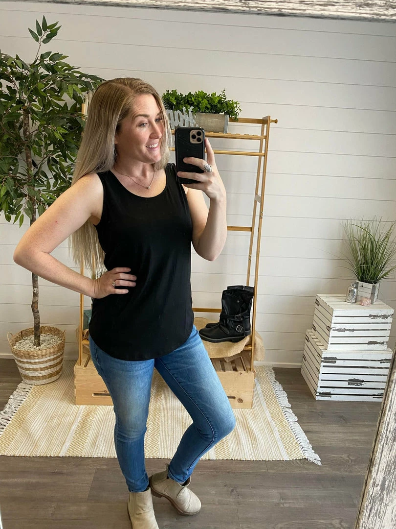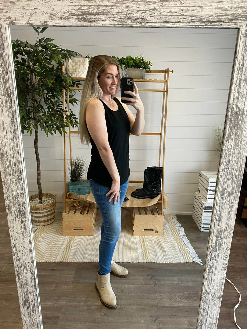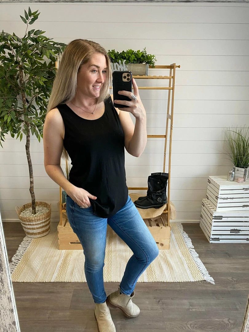 Meet Tiffany! She’ll quickly become one of your favorite and go-to tanks all year! The fabric is lightweight and breathable, with amazing stretch. It’s also wide enough to wear your favorite bra, and has a flattering scoop design along the front and back of the tank.ย