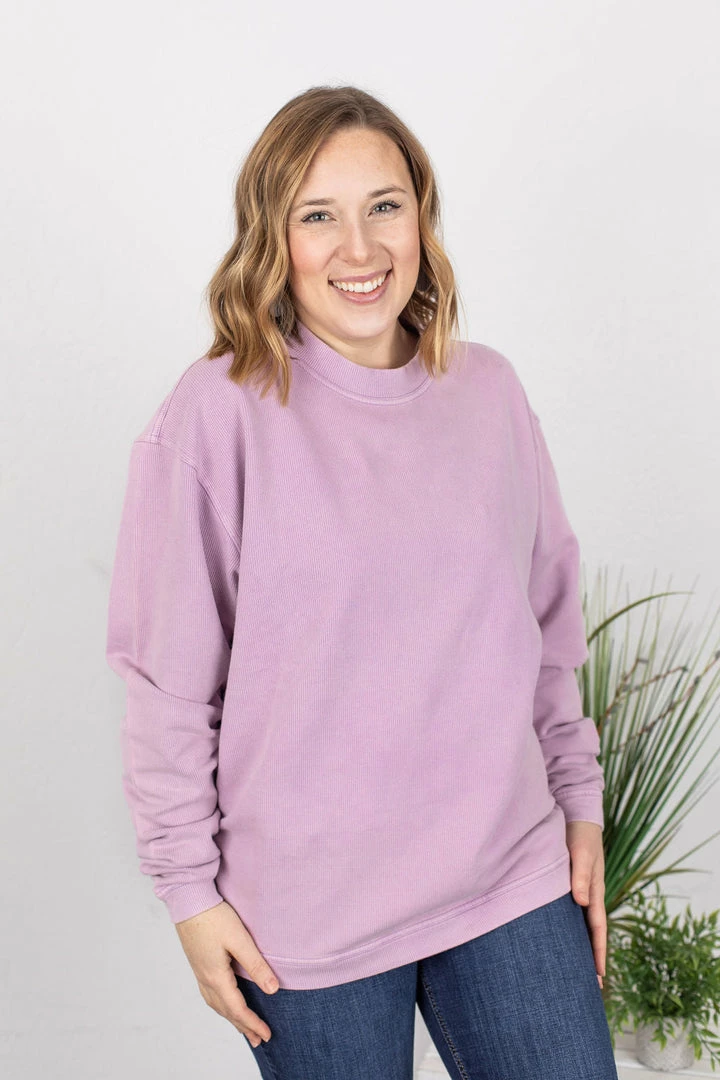 Get ready to get cozy! This corded pullover is a thicker, comfy, oversized pullover that will you have relaxing in style!