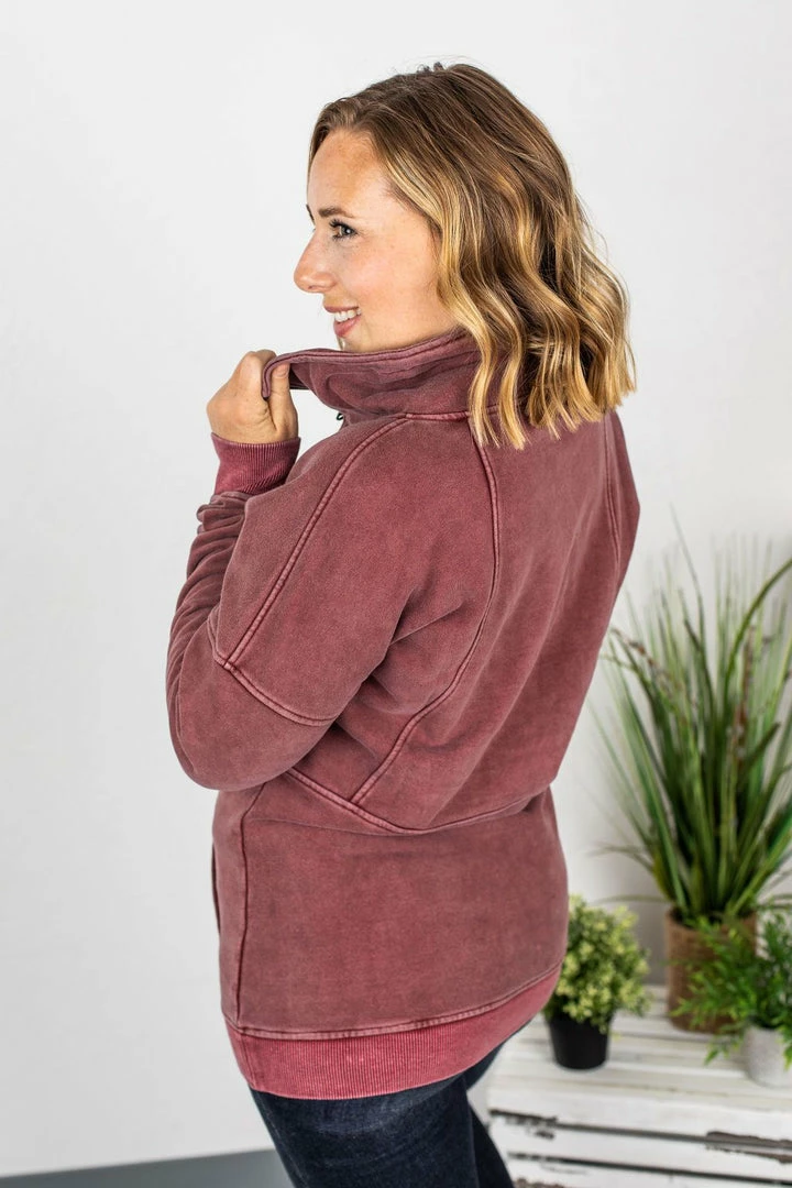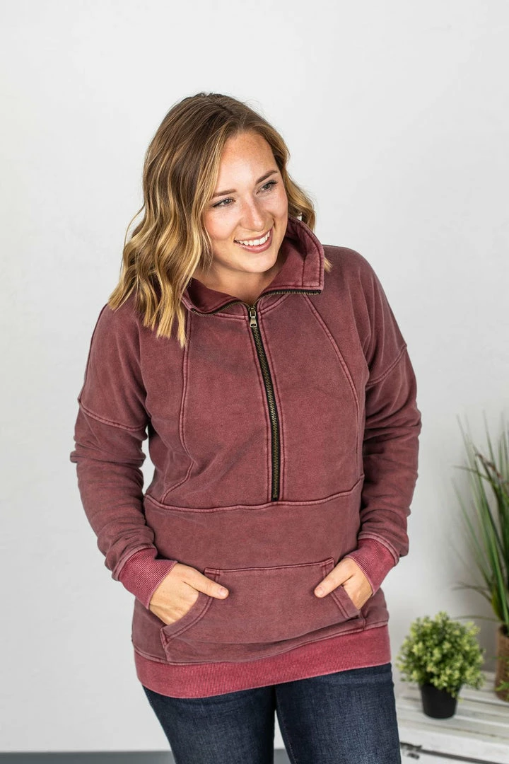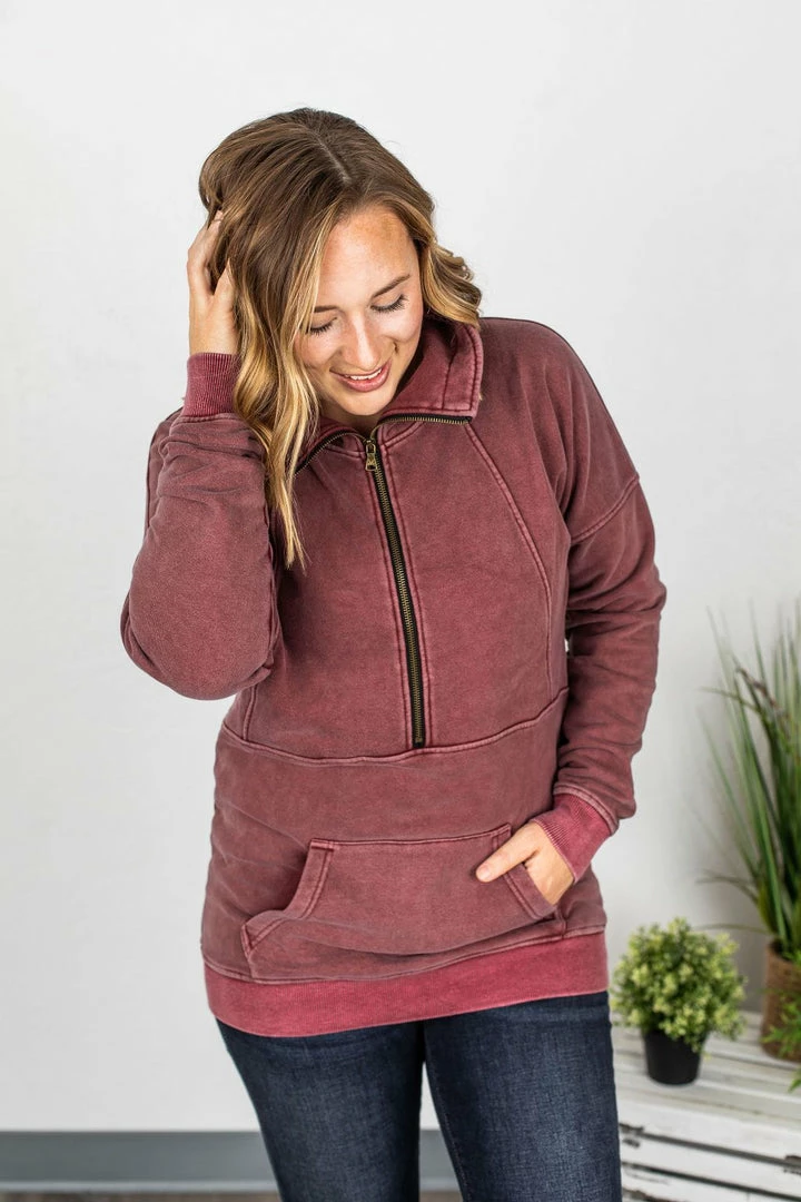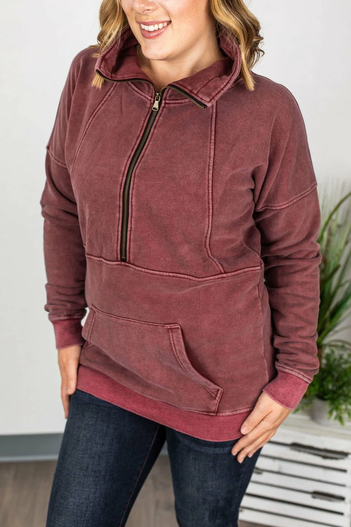 This vintage wash halfzip is beyond soft and the fit is perfect! Classic vintage wash accents, plus an antique bronze zipper to finish it off! We are also big fans of all the stitching accents and seamlines on these beauties! Seriously…we are so proud of this one!
