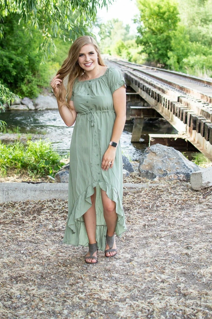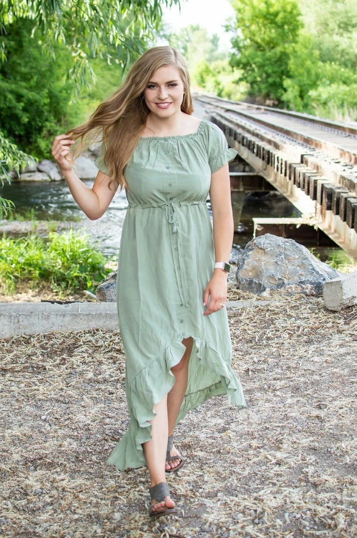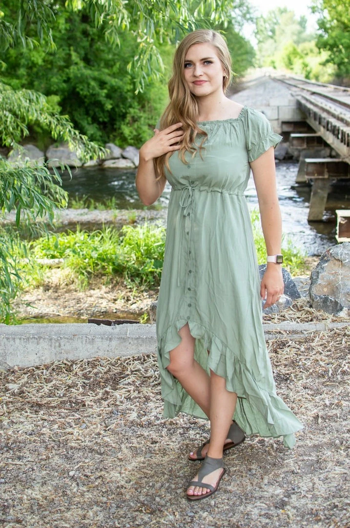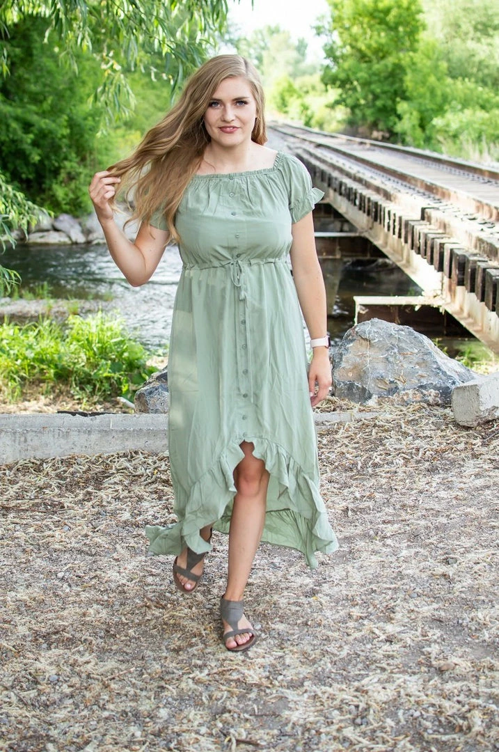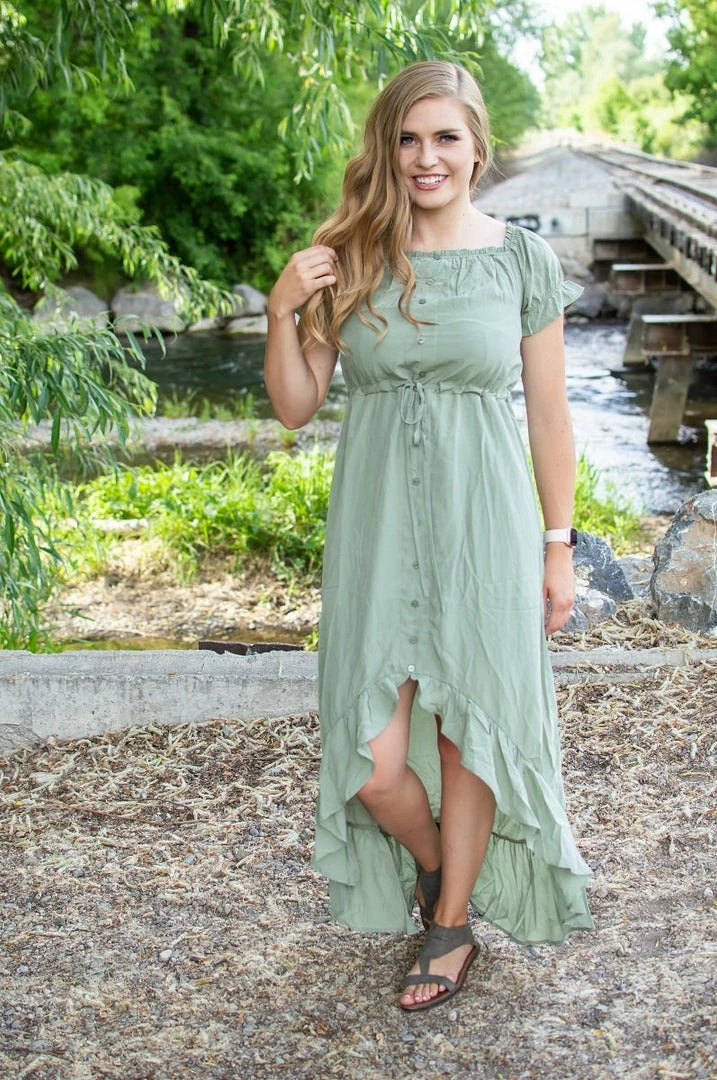This boho dress is nothing short of perfect for fall transition! Perectly light weight for the end of summer months but comfortable and cozy enough to transition into fall! The gorgeous fit and high-lo style is stunning on all body types! This boho dress is gorgeous for on or off shoulder wear!