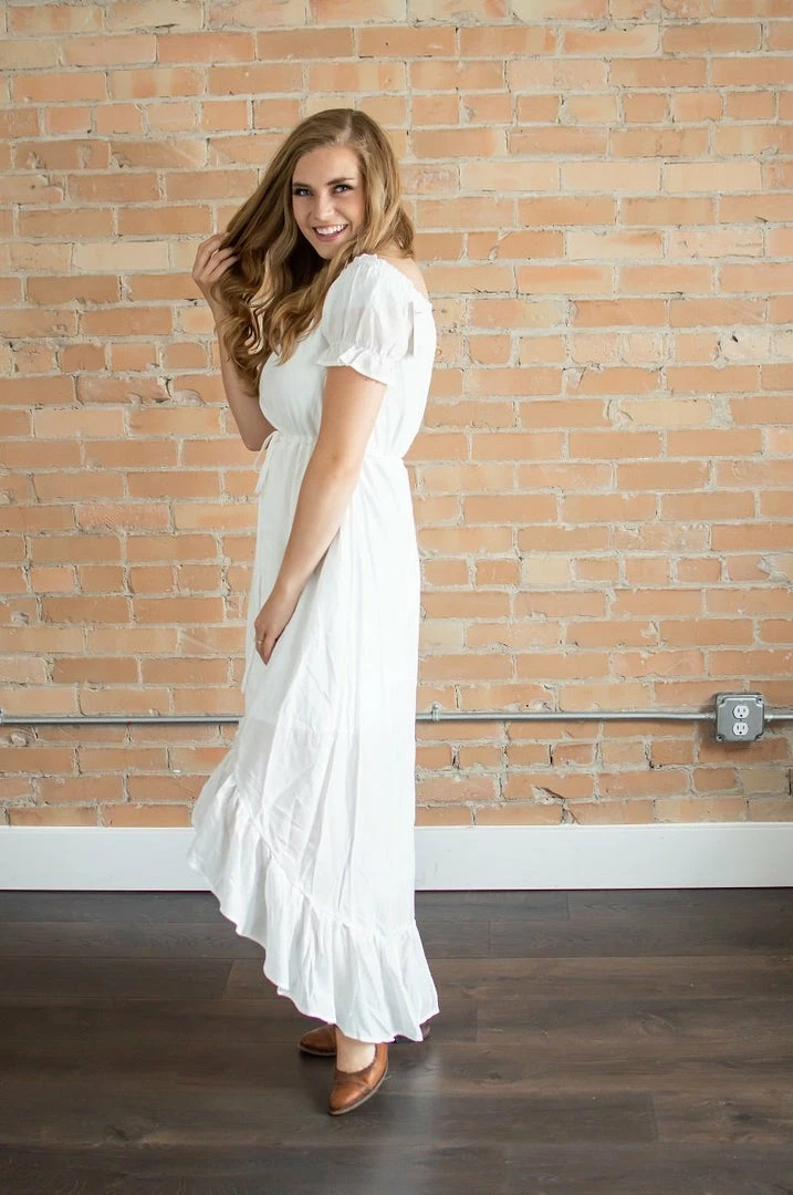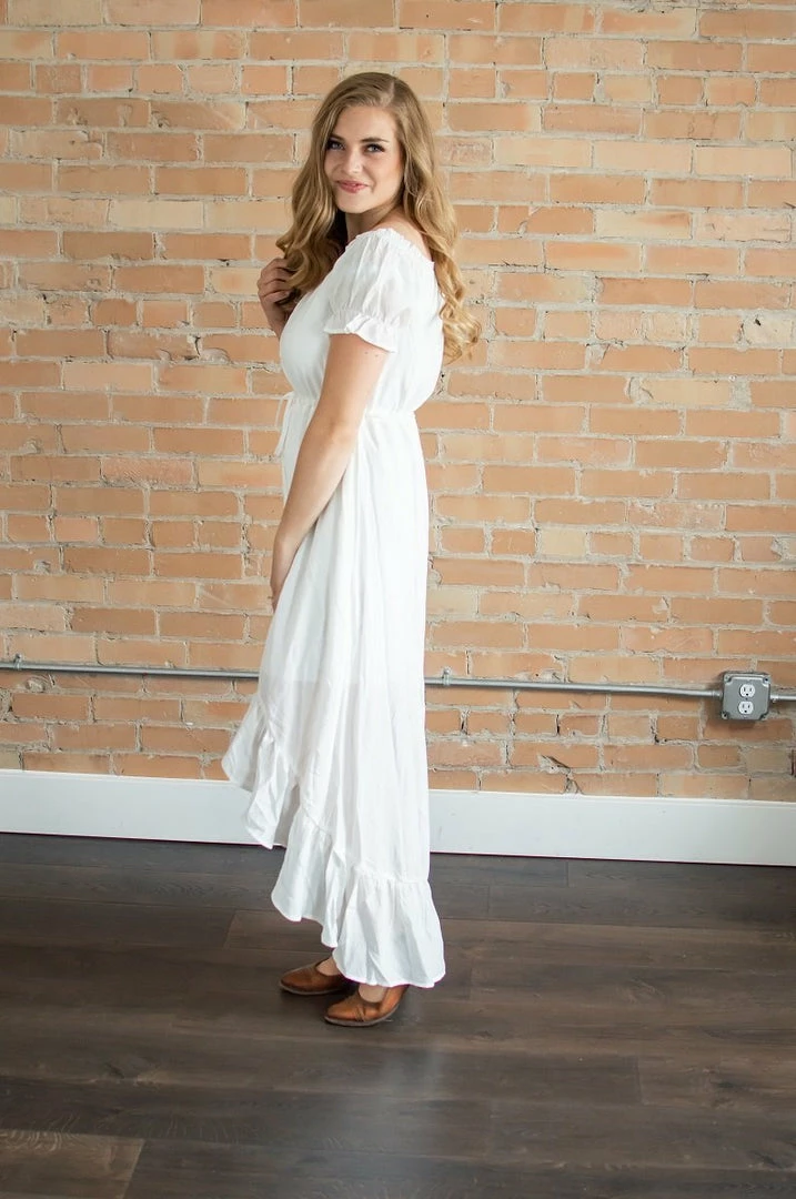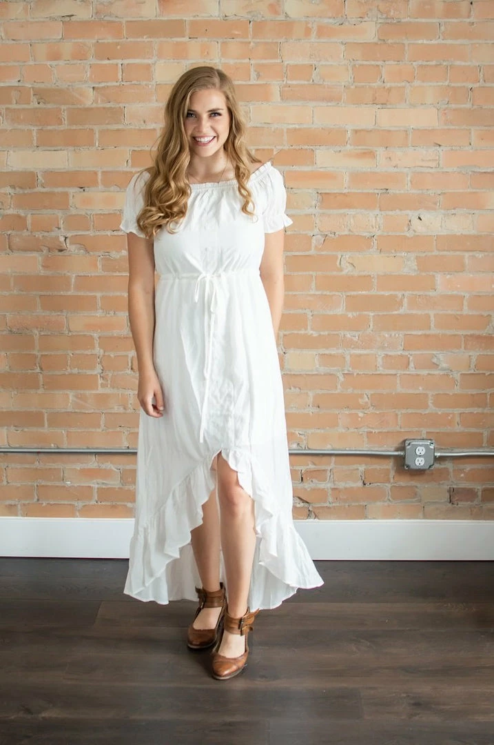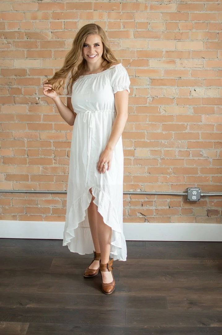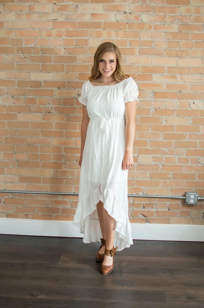 This boho dress is nothing short of perfect for fall transition! Perectly light weight for the end of summer months but comfortable and cozy enough to transition into fall! The gorgeous fit and high-lo style is stunning on all body types! This boho dress is gorgeous for on or off shoulder wear!