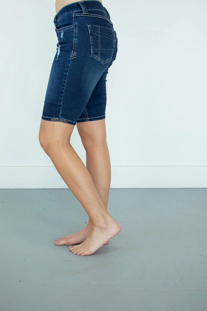 These ultra stretchy denim bermuda shorts will be your favorite, we guarantee it! They are super comfy with the perfect amount of stretch! Wear them to work or on a casual date. Any outfit will be better with these shorts!