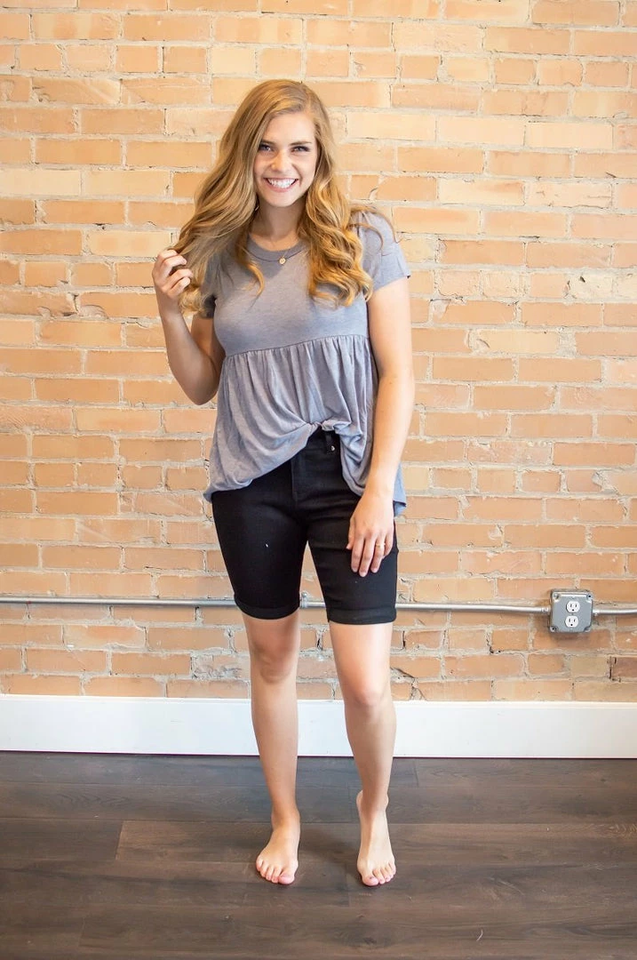 These high stretch bermuda shorts are so comfortable and so flattering on any body type! The double button adds a little extra flair to a casual pair of shorts!