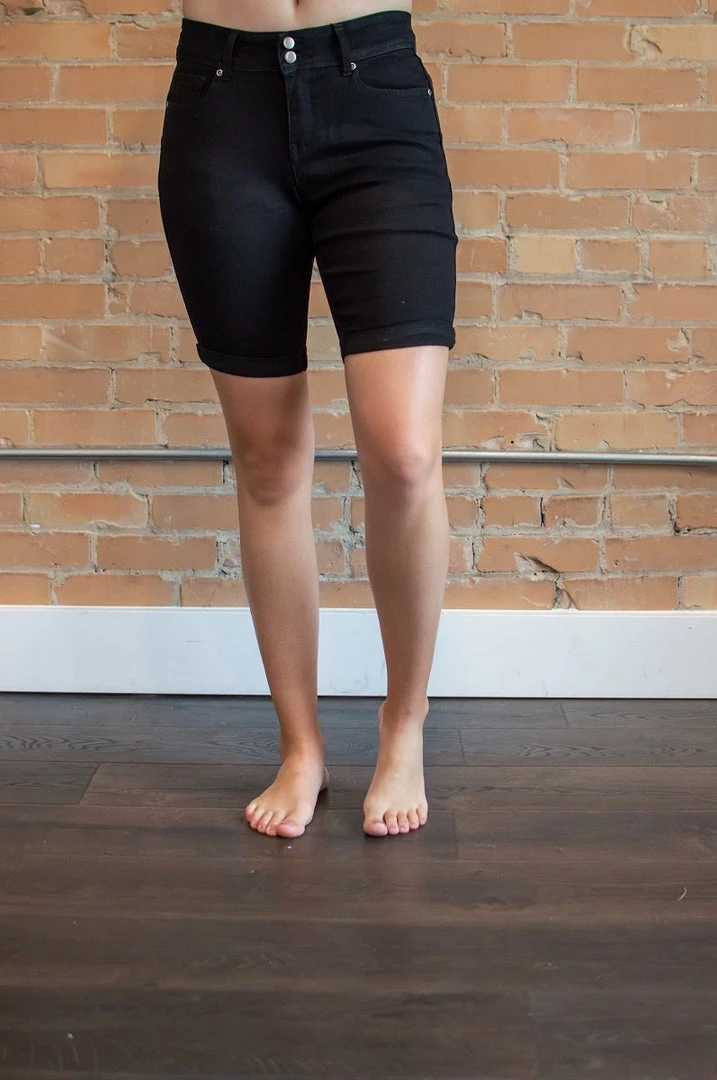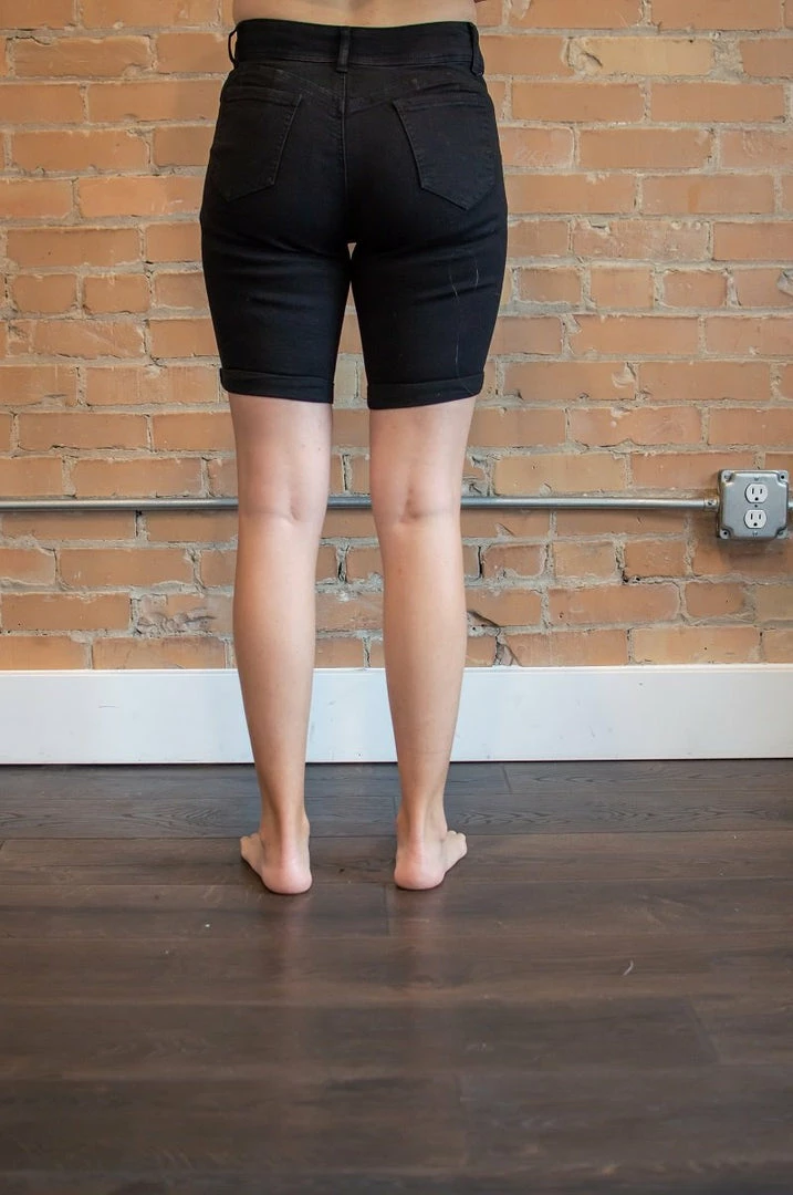 The rich black color of these bermuda shorts makes them perfect for a day at work or a casual night out. Throw them on with a pair of heels or your favorite sandals. Either way you can’t go wrong.