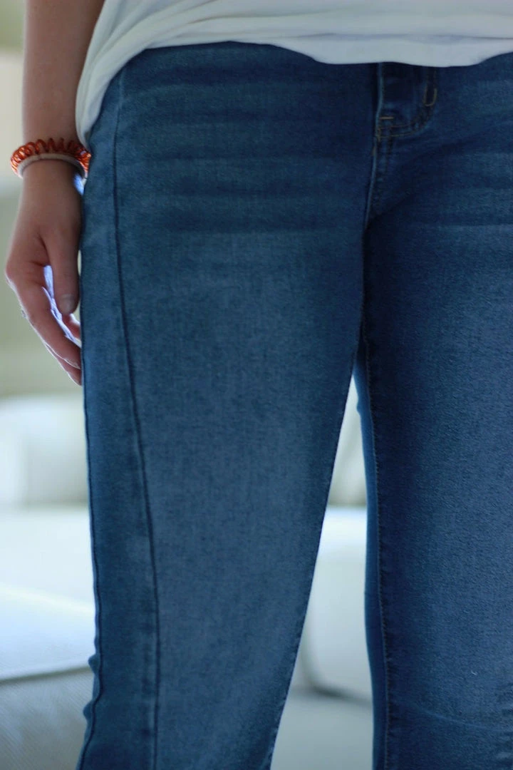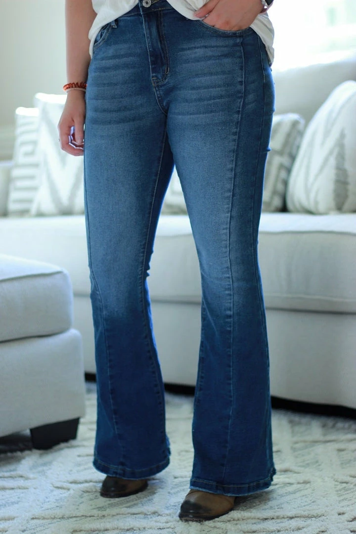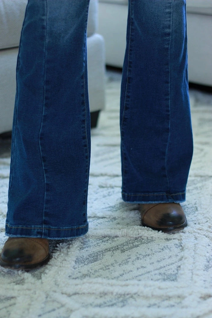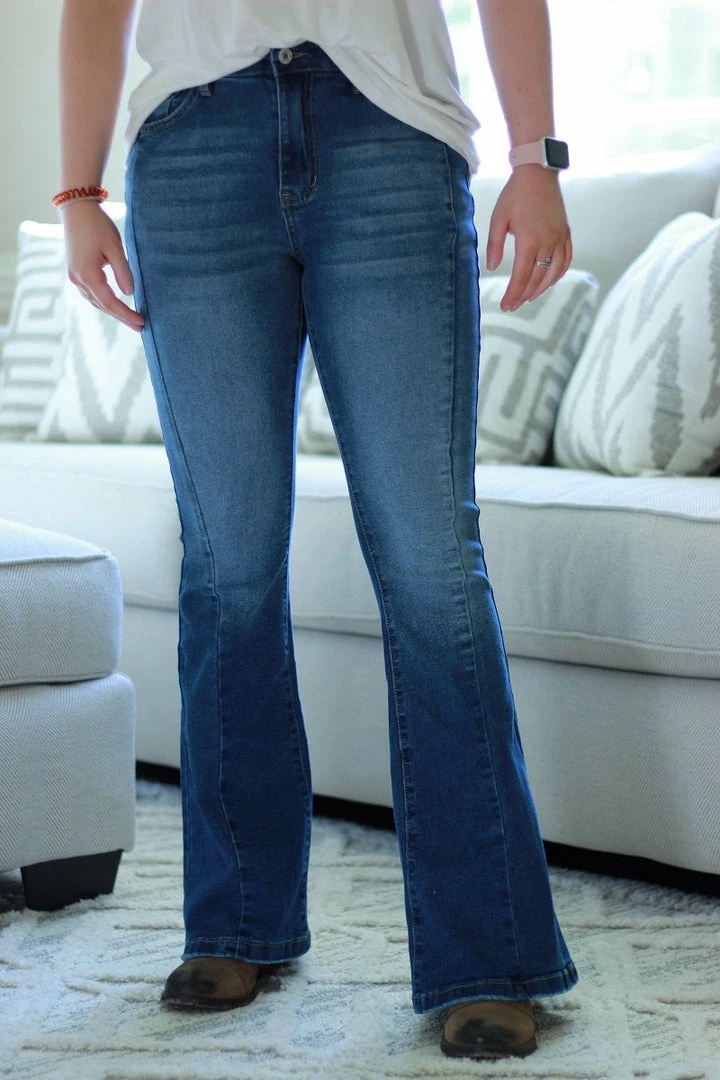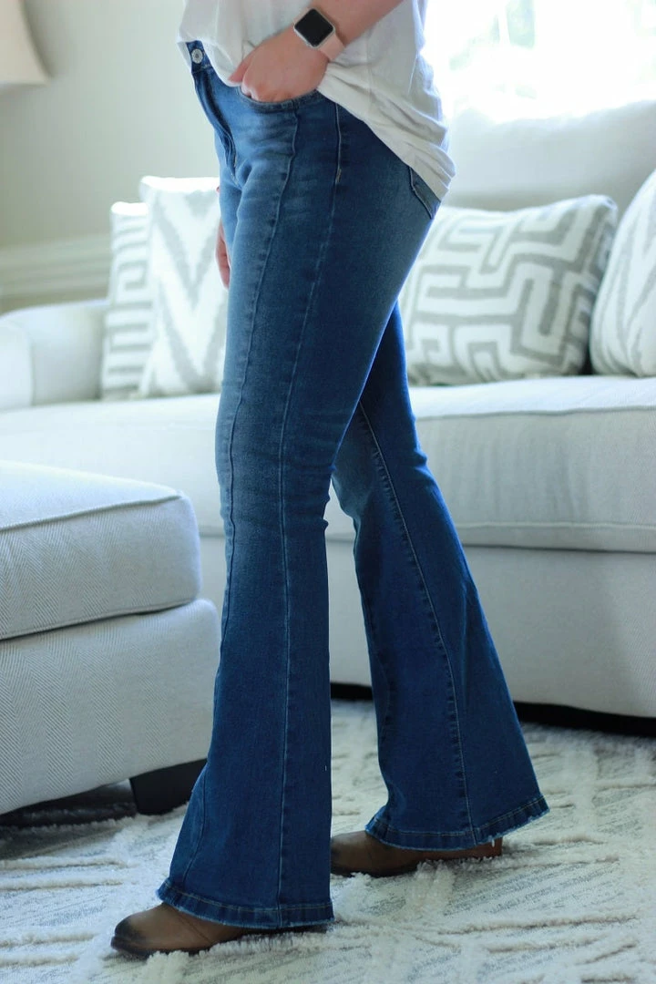 If you are looking for some flare jeans that are non-distressed these are going to be your go to! Great stretch, adorable detailing and no distressing!