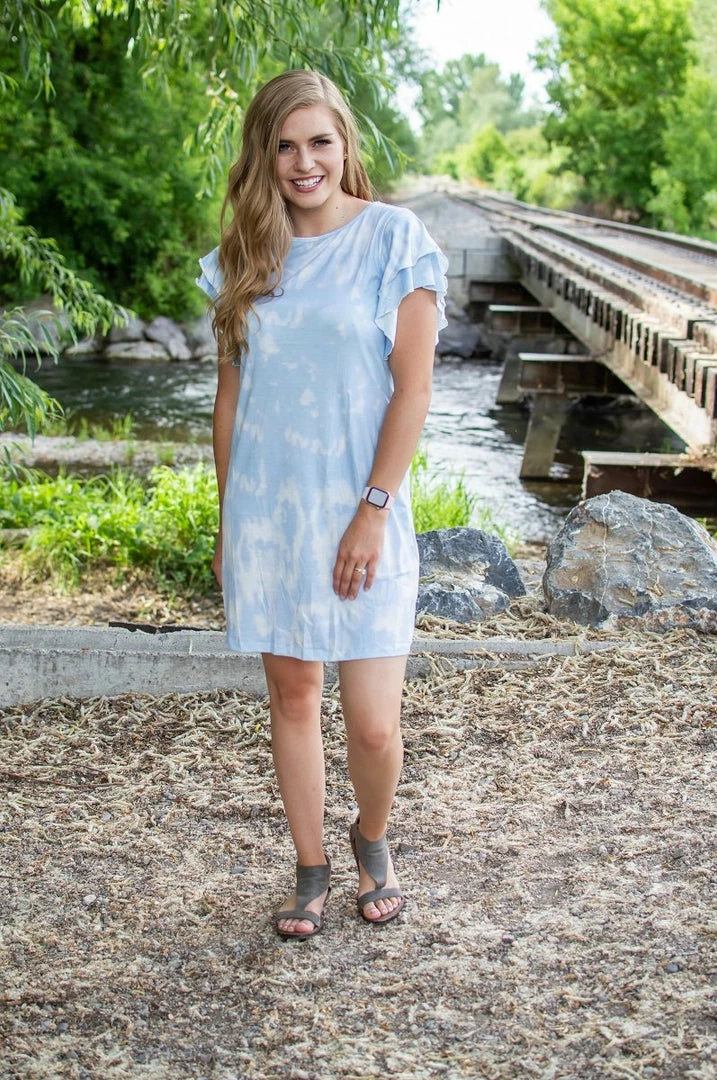 Bring style and sass to your summer wardrobe with this Flutter Sleeve Dress in tie dye. The poly spandex fabric is soft and ultra comfortable and flattering on all body types! Each tie dye is unique in its own way.