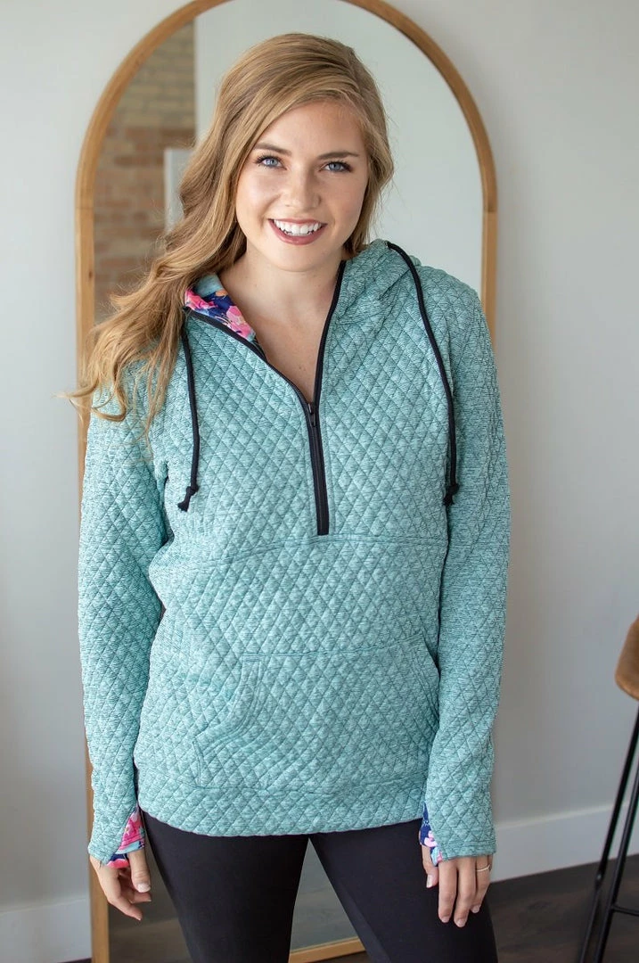 This quilted halfzip is as comfortable as it is gorgeous! With that unique, stretchy, soft quilted fabric and stunning floral fabric you are sure to fall in love!