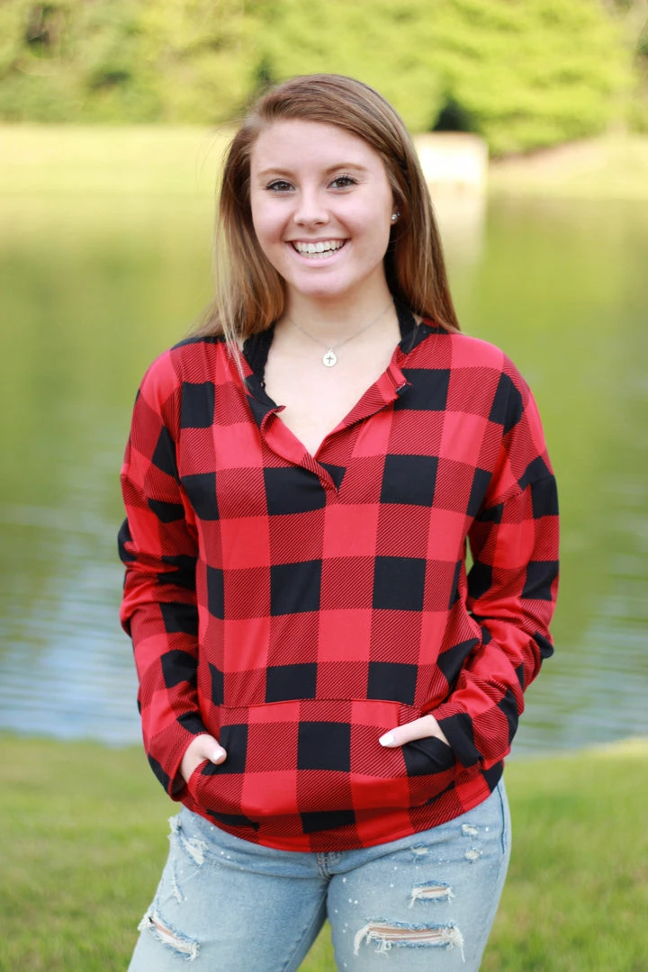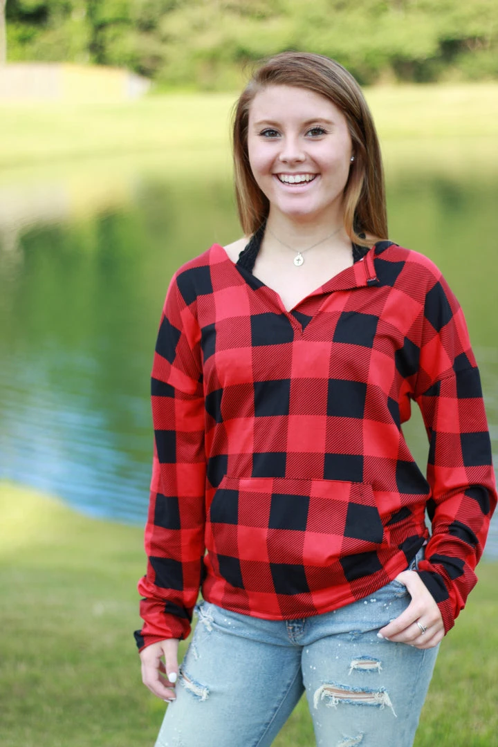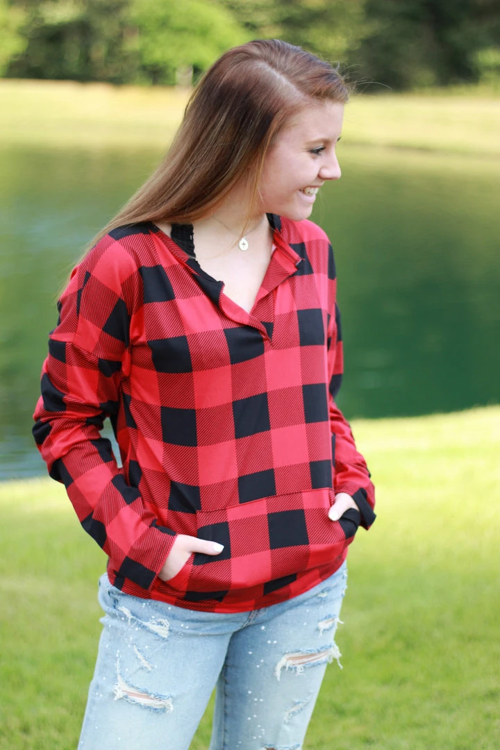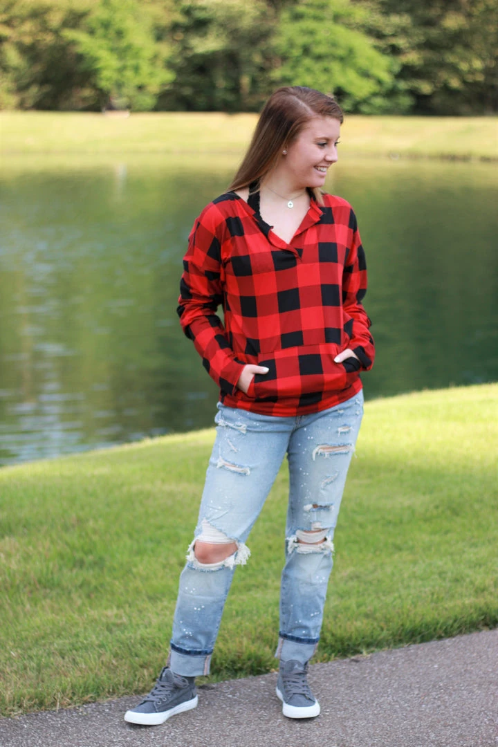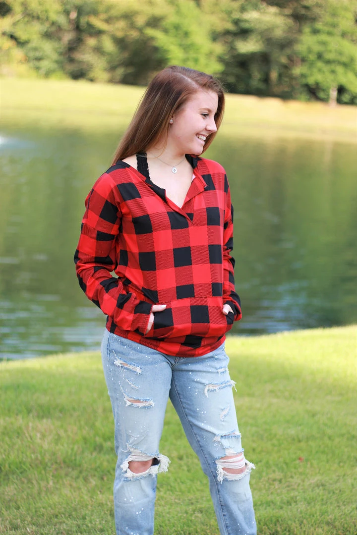 Want that hoodie feel without the chunky hood? We are bringing you just that! Get your kangaroo pocket, thumbholes and the comfort of a hoodie without a chunky hood on the back. Perfect for layering or wearing alone! Manufactured gorgeously in the United States using our all time favorite Brushed Poly Spandex. Not to mention, this style is made perfectly to allow it to be a Nursing Friendly top!