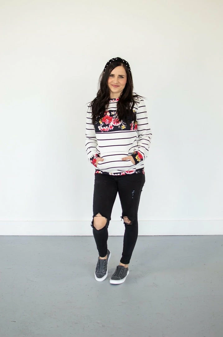 Cheapest 🎉 Rogue Society Apparel® Striped Floral Crew Neck ⭐