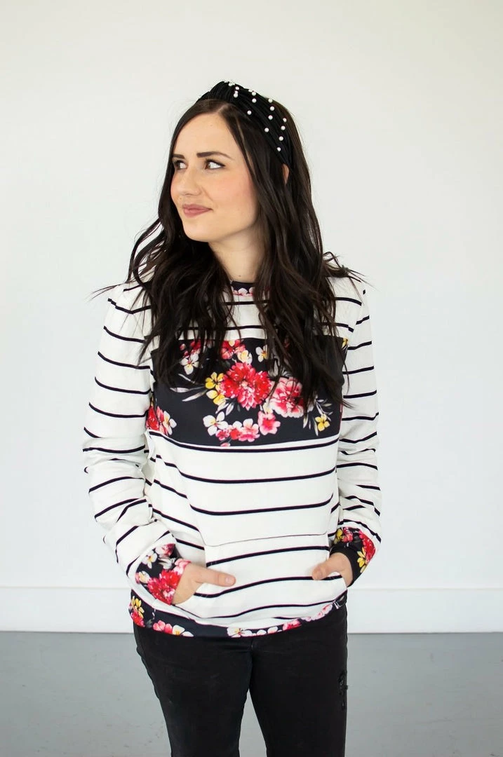 SKU: rogue-society-apparel-4904965046410 Category: LONG SLEEVES Tags: Crew, Floral, Kangaroo, Pocket, Stripes