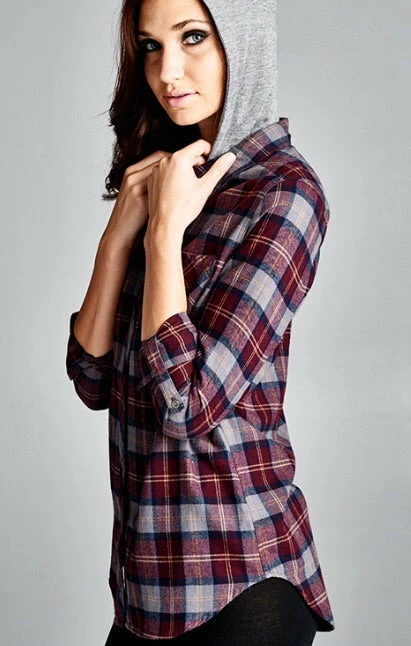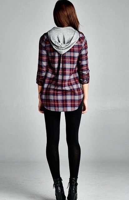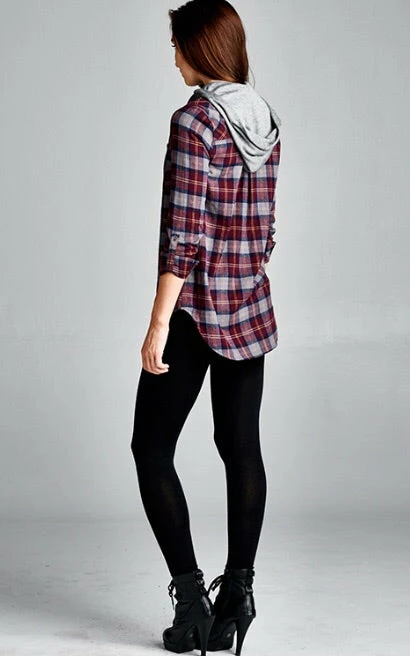 The Downtown Flannel. This flannel is a must have for the cooler seasons. The colors in the plaid are a perfect melody. This top is 100% cotton and I love how you can button up the sleeves, but wait there’s more…It’s got a detachable hood!! Slim fit.